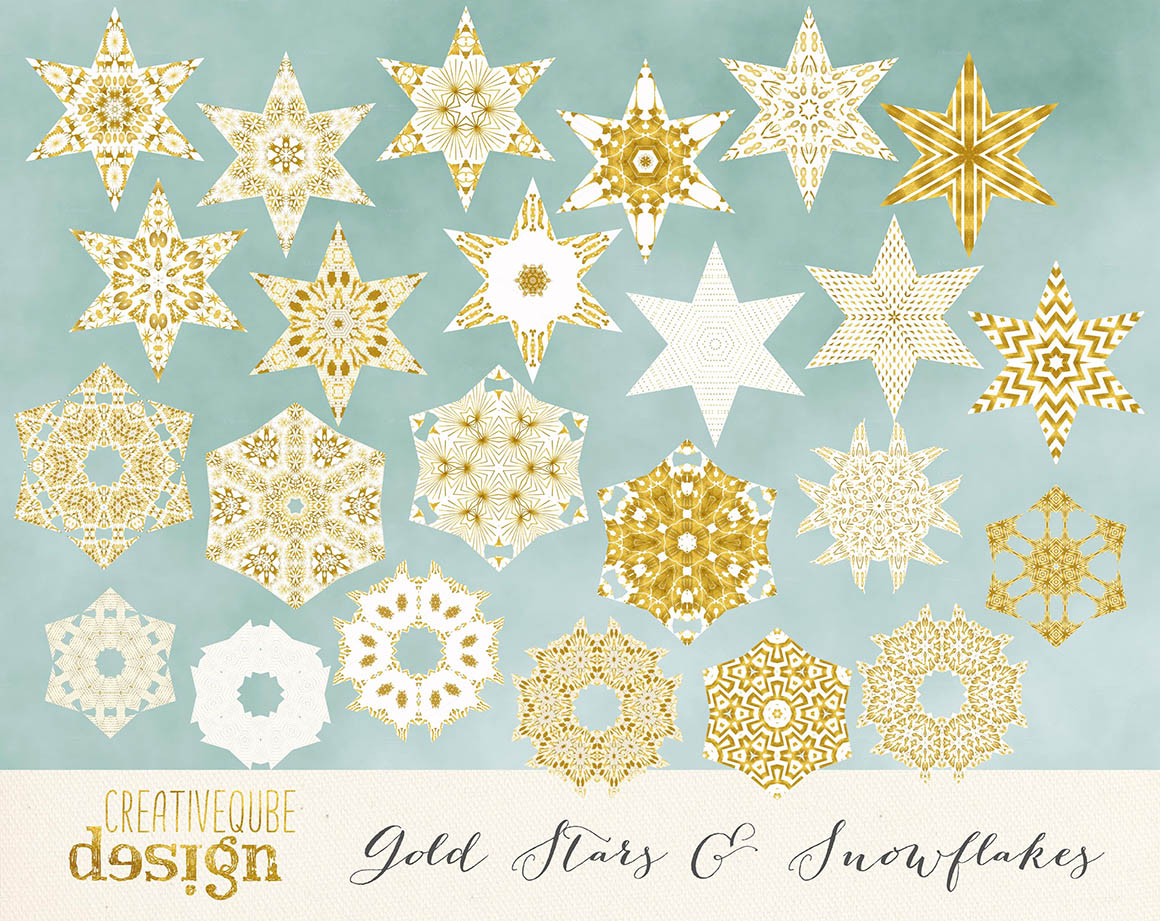 13. Gold Stars and Snowflakes clipart by CreativequbeDesign