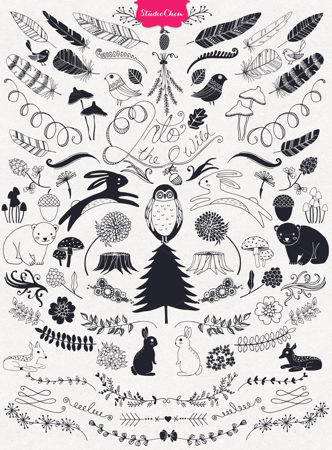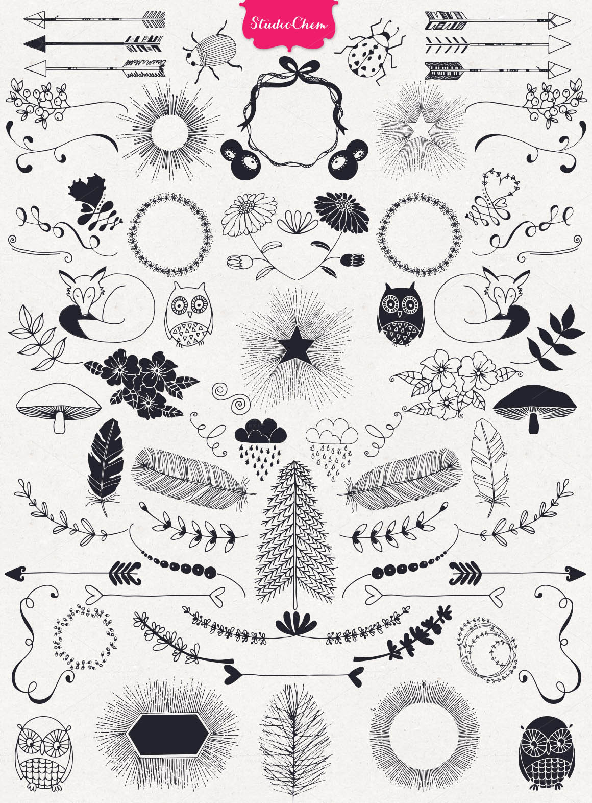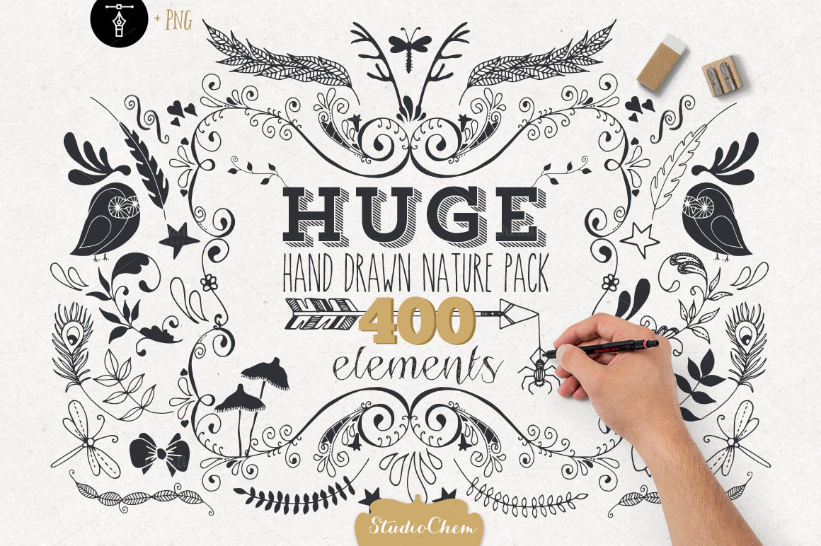 11. HUGE Hand drawn Nature Pack Elements by Studio Chem