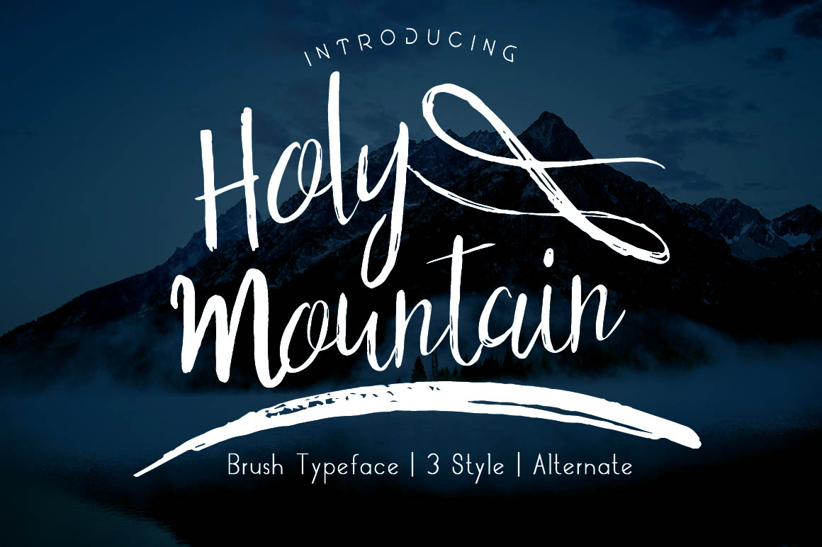 Holy Mountain, a casual art Hand Script consisting of upper and lowercase letters, punctuation and numerals, stylistic alternates. INCLUDED otf, ttf, alernative OTF, LIGATURE a i u e o,ff, tt, ll.