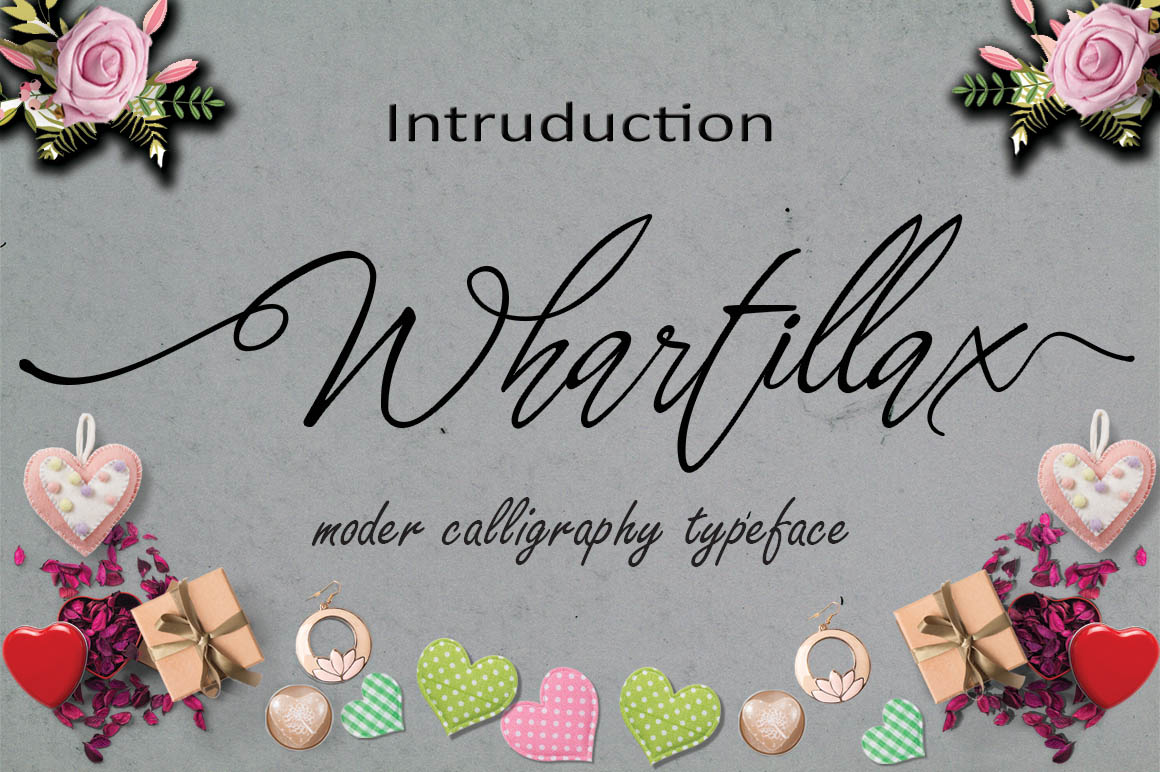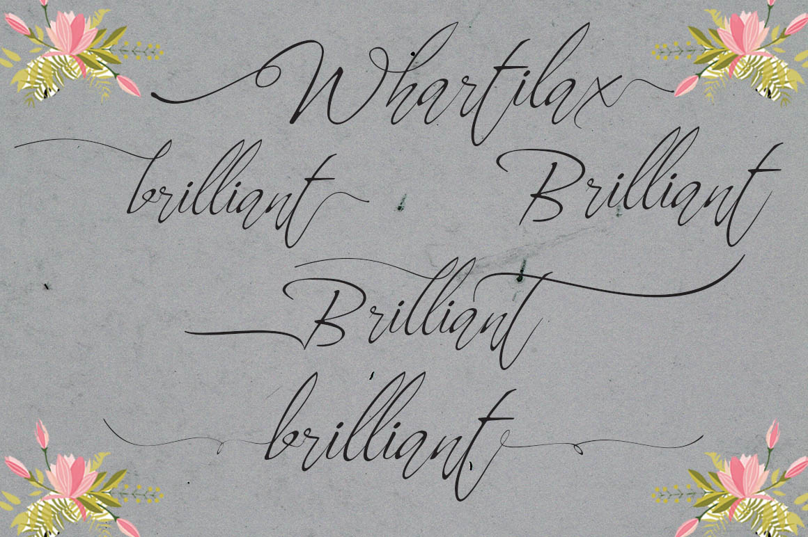 Whartillax Script Font modern calligraphy with fine lines, tapered pull-edged pen, a blend of classic and modern touch and elegant. Can be used for various purposes.such as the title, signature, logo, correspondence, wedding invitations, letterhead, signage, labels, newsletters, posters, badges, etc.Whartillax Script features 387 glyphs and also supports in pragram, Adobe Illustrator CS, Adobe Photoshop, Adobe InDesign, Corel versions draw X, Microsoft Word, Support Language: Albanian, Basque, Breton, Chamorro, Danish, Dutch, English, Faroese, Finnish , French, Frisian, Galician, German, Icelandic, Italian, Malagasy, Norwegian, Portuguese, Swedish.