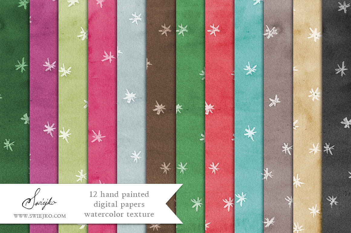 Set of 12 (12×12 inches) handpainted digital papers, ideal for printing or digital design. Papers are great for christmas or wedding invitations, greeting cards, calendars and much more. They have really nice watercolor texture and juicy holiday colors.