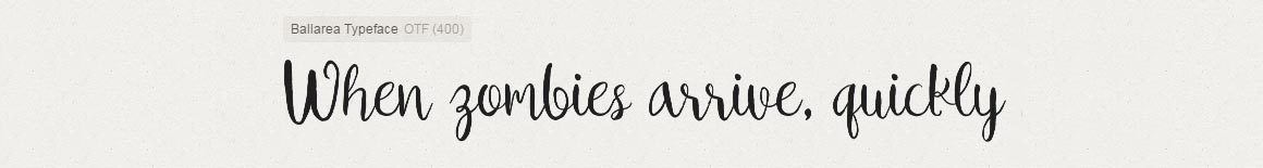 Ballarea Typeface was made handwritten using a calligraphy brush,was made deliberate rough shape this font look very natural. Ballarea Typeface is very suitable for a logo design,wedding card logo, clothing brand logo and much more. Making it easier for you in fine-tuning and perfecting the design you are working on. Ballarea Typeface also supported with extra character that include : standart ligatures,stylistic set 01 – stylistic set 03 and stylistic alternates. This font works best with open-type friendly applications,How to get access alternate glyphs from open type fonts : http://to.ly/mvqC