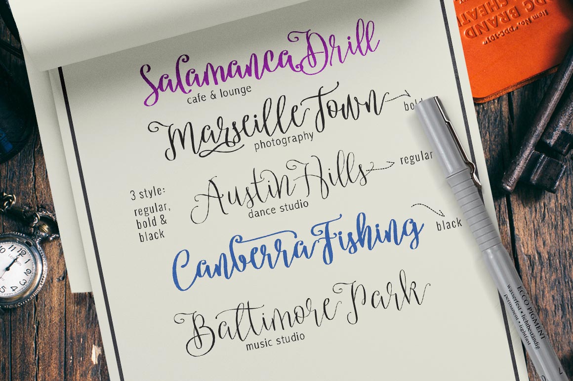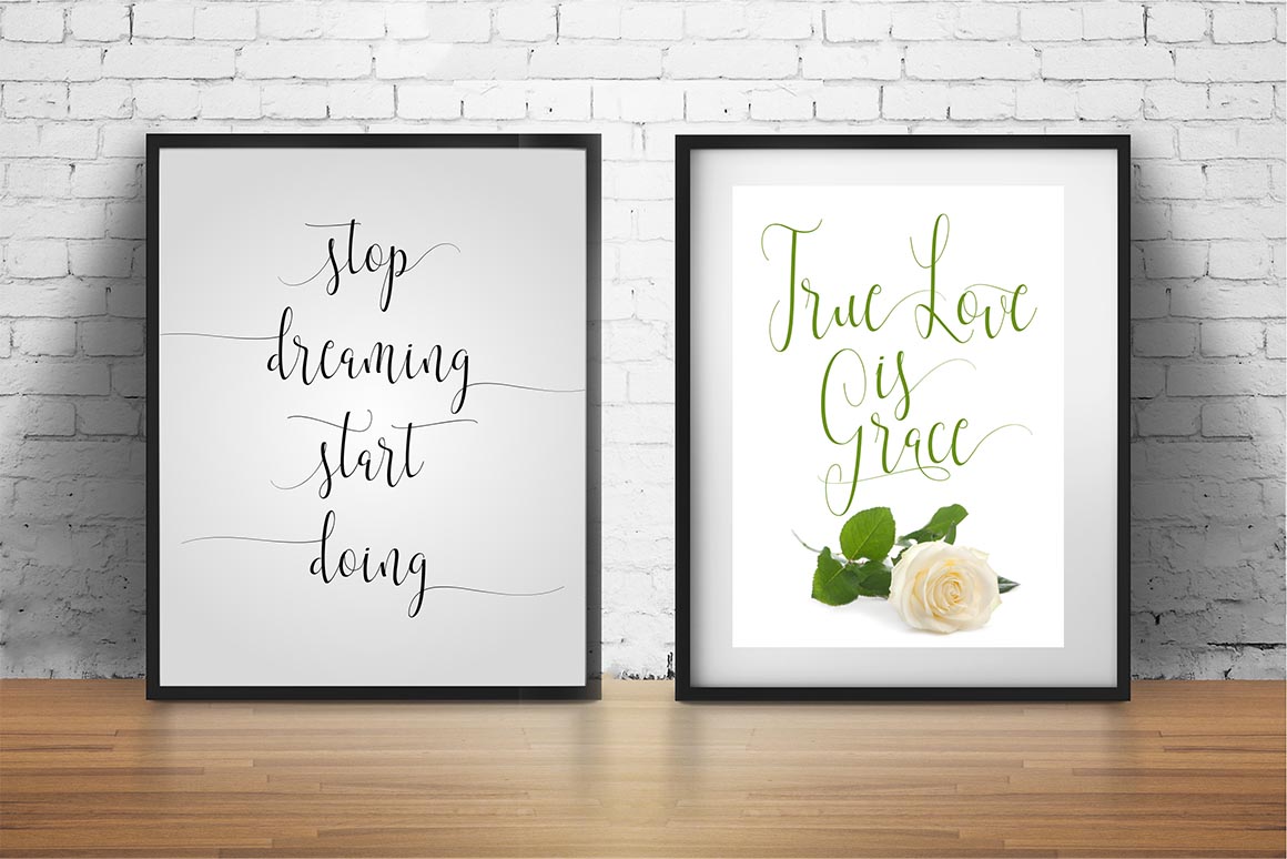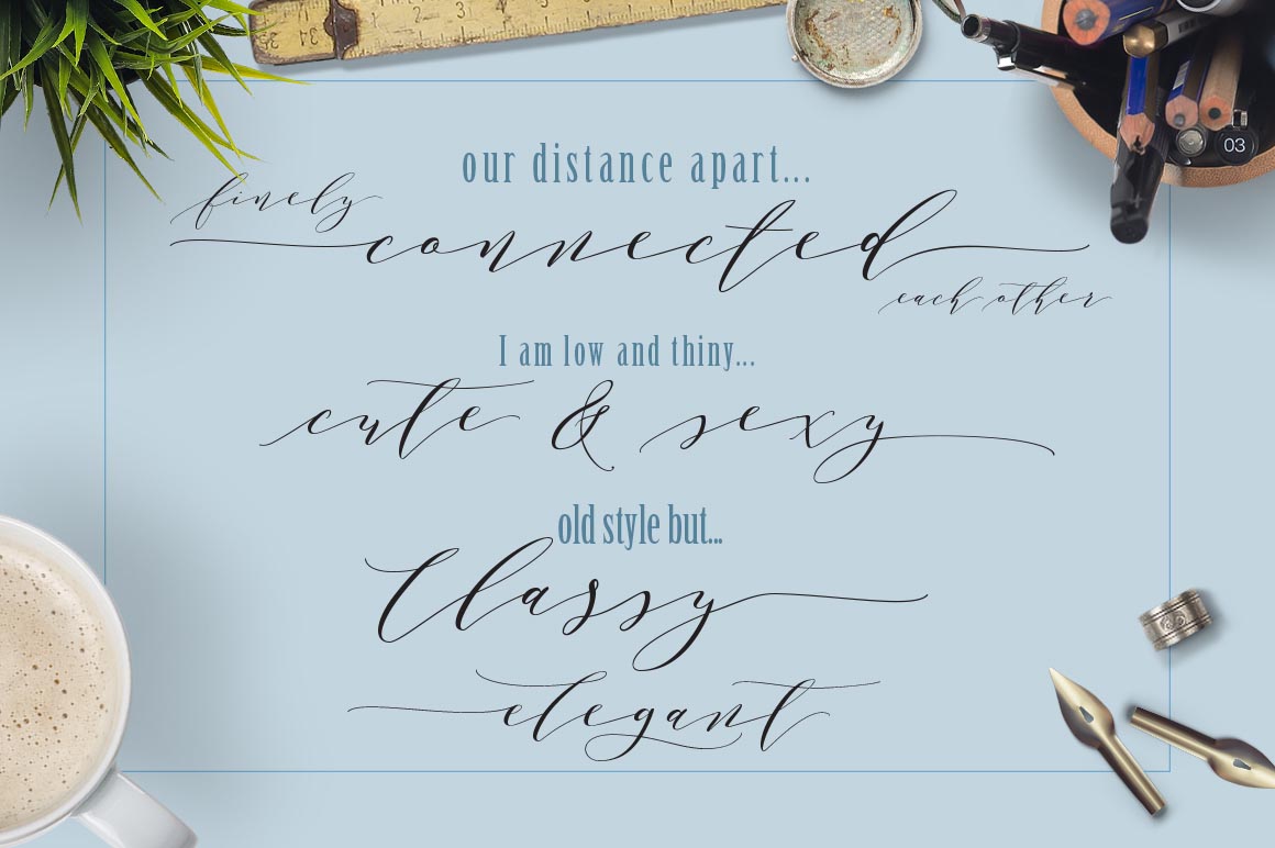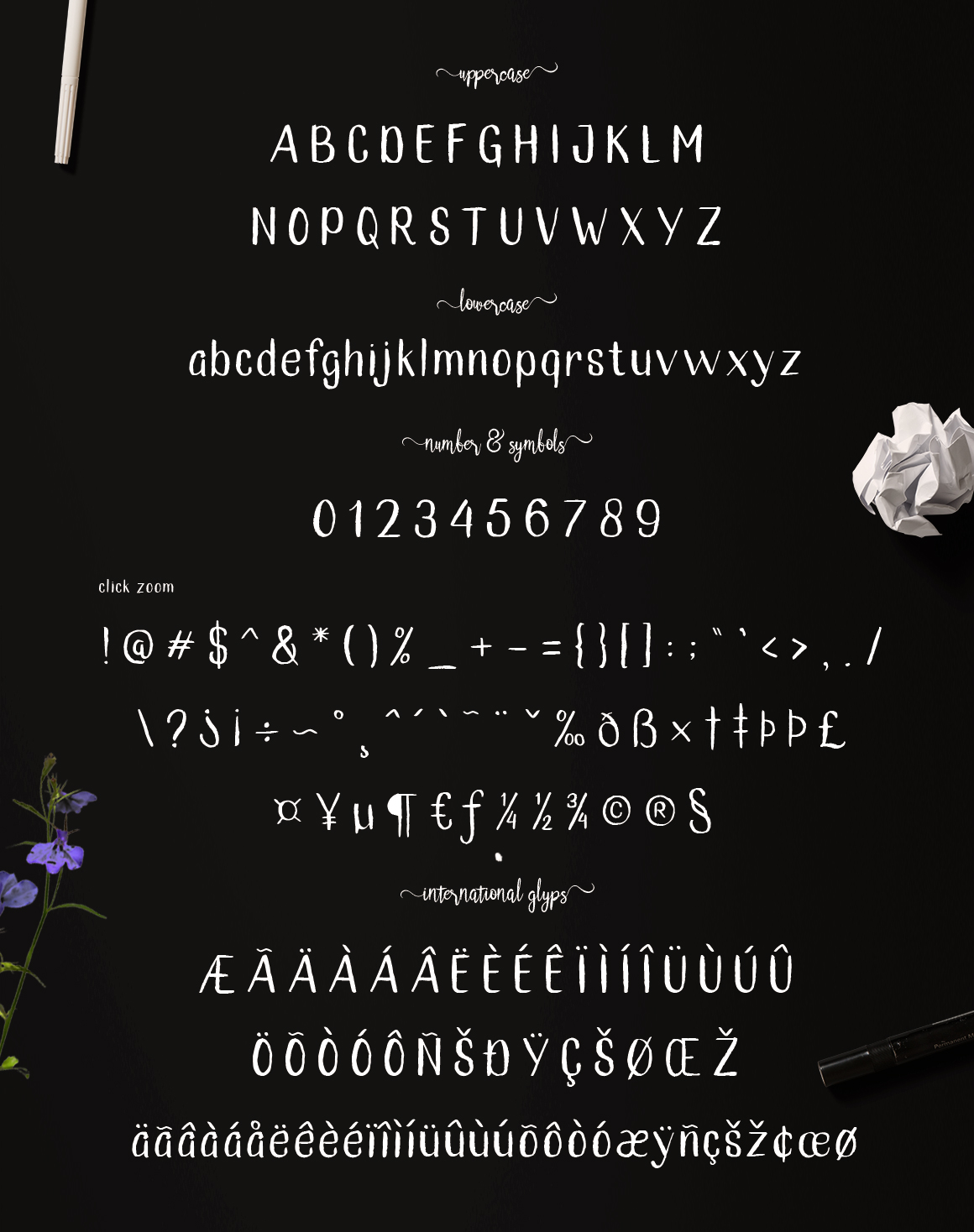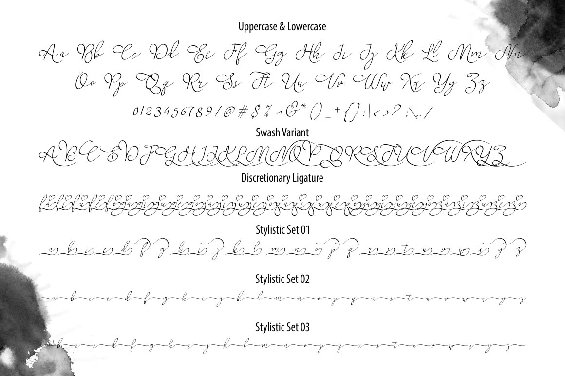 Hand Lettered Calligraphy Font with beautiful wave and natural flow. This fonts is the sister of Melika Script. have unique letter, with natural handdrawn style, and has a softer and smoother character with finely connected all of characters. They have beautiful simple elegant swashes in separated font, You can use any graphic design software to access the alternative letters. Melika Letter is suitable for weddings, invitations, greeting cards, quotes, posters, branding, name card, stationary, design title, blog header, art quote, typography art, modern envelope lettering or book design, happening style like handdrawn design or watercolor design theme, craft design, any DIY project, book title, wedding font, pop vintage design, or any purpose to make our art/design project look pretty and trendy. Melika Letter come complete with 361 glyphs. This includes uppercase, lowercase, numerals, fractions, punctuations, multi lingual support. and most other glyphs is a variation which is parts of the OpenType features such as; Standard Ligatures, Contextual Alternates, Stylistic alternates.