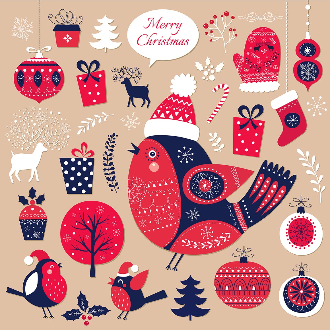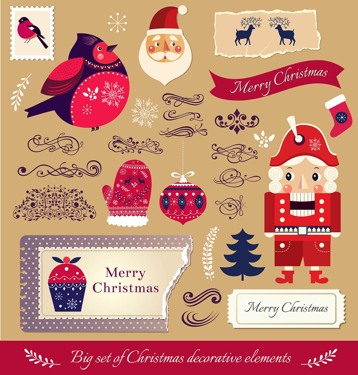Beautiful Christmas collection of decorative traditional elements and symbols of Christmas. Ideal for print and decoration your holiday projects, tags, greeting cards and other prints. Vector EPS files!