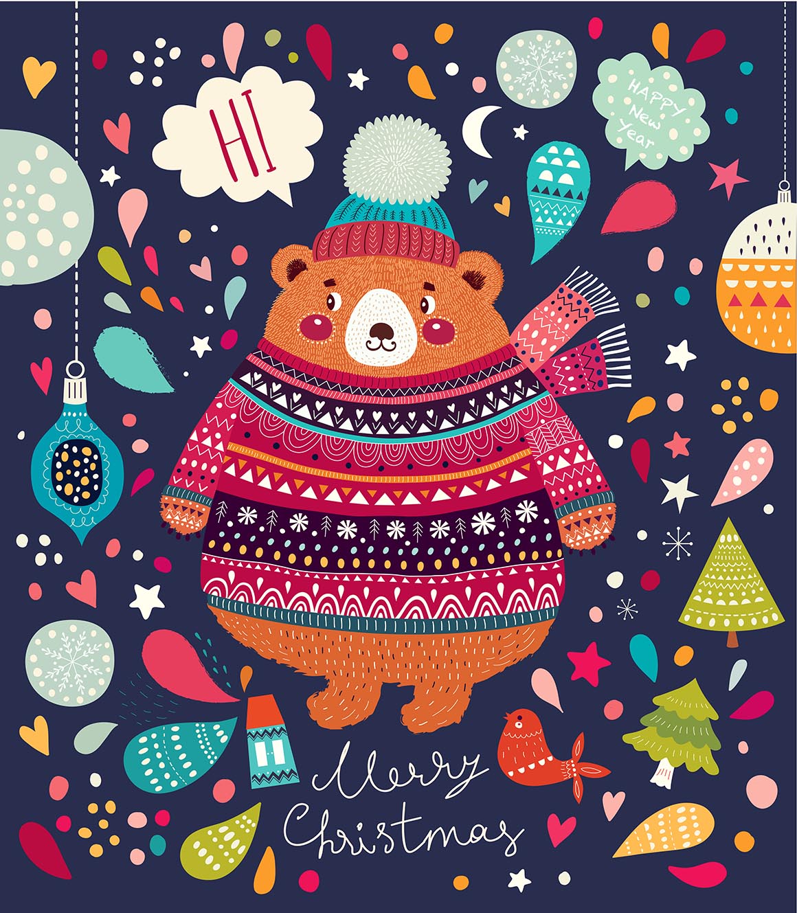 Wonderful Christmas illustration with adorable Bear. This cute bear brings a little warmth and kindness in the Christmas. Vector EPS files!