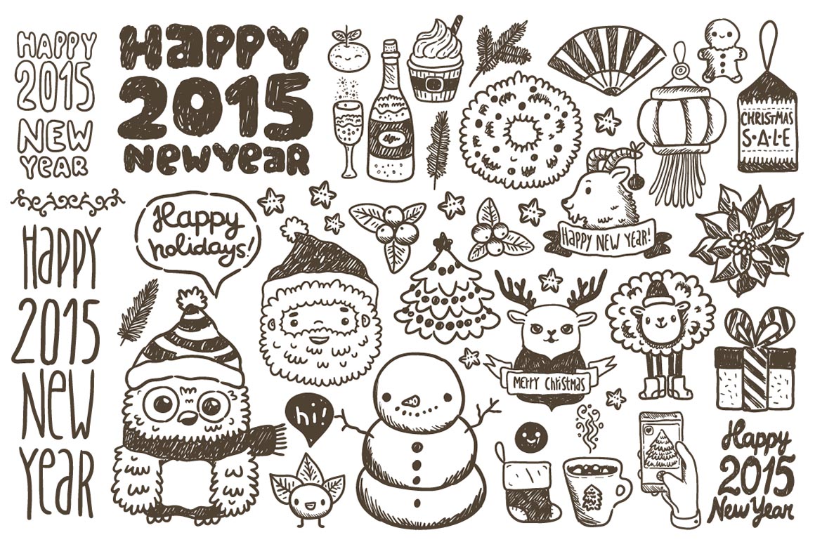 Vector illustrations with Sketchy Happy New Year and Merry Christmas characters and objects Vector EPS files!