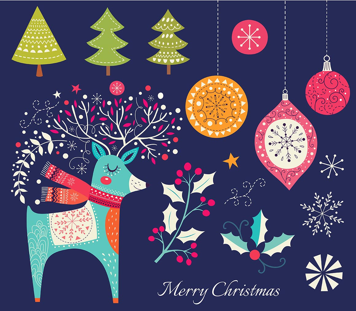 Beautiful Christmas collection of decorative traditional elements and symbols of Christmas and New Year holidays. Vector EPS files!
