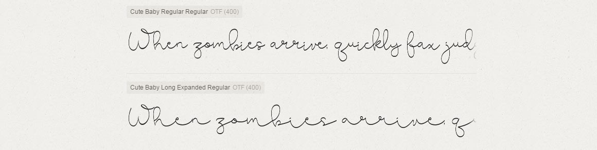 Cute Baby is a modern handwritten script font offerings for a newborn baby, the font of this type consists of two kinds of styles. Regular style and length is perfect for lovers of this type fonts. Font beautiful and elegantly simple very meaningful when used on the products you like logo design, wedding invitation, headings, signatures, t-shirts, letterhead, signage, labels, posters etc.