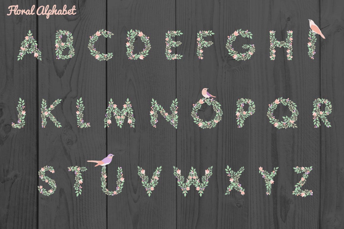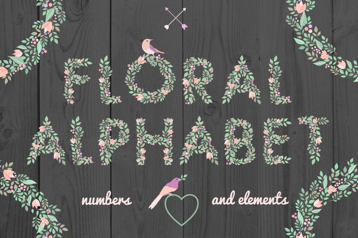 It is hand drawn floral alphabet, numbers, elements and words. All files vector, so you can customize the color and size as you like it. You can use them in cards, invitations, posters, magazines, logos and more. Such letters will decorate any holiday!