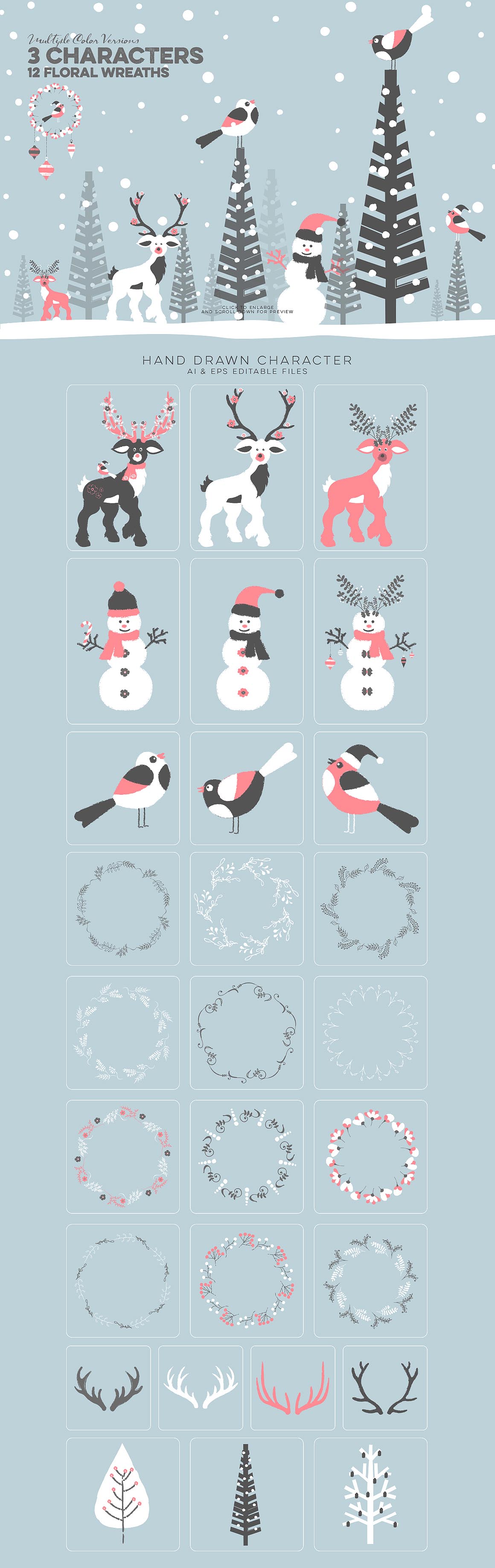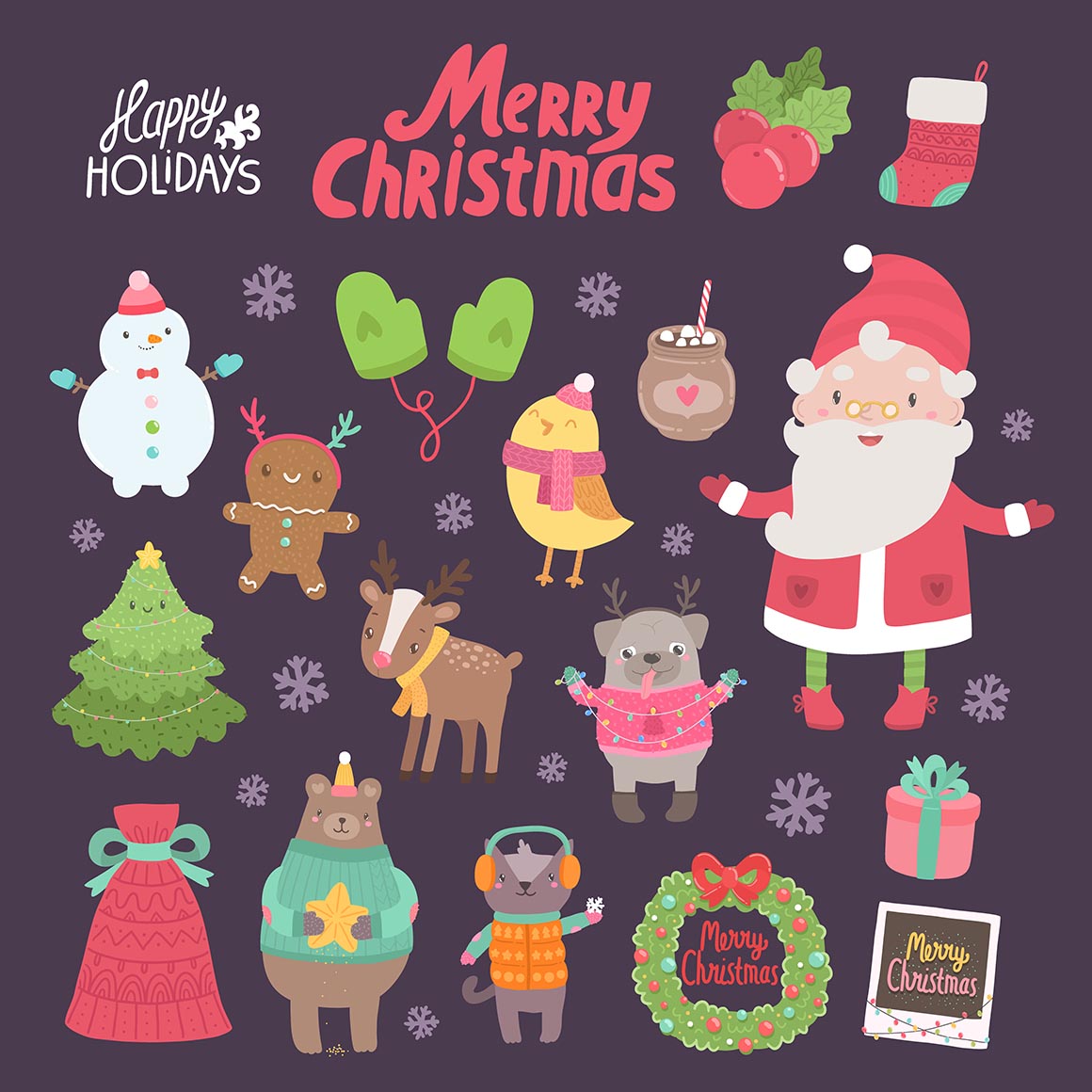 Vector illustrations with Christmas characters and objects. Vector EPS files!