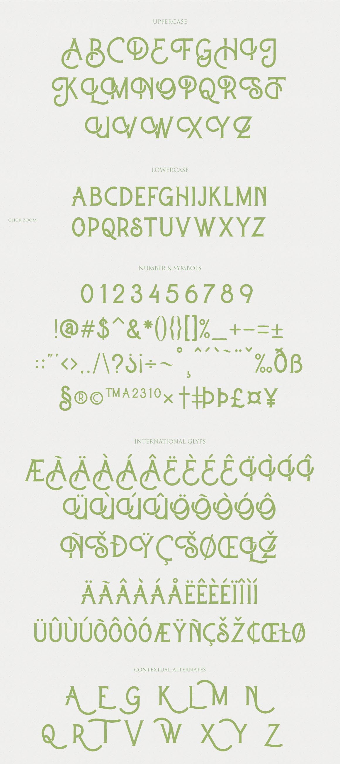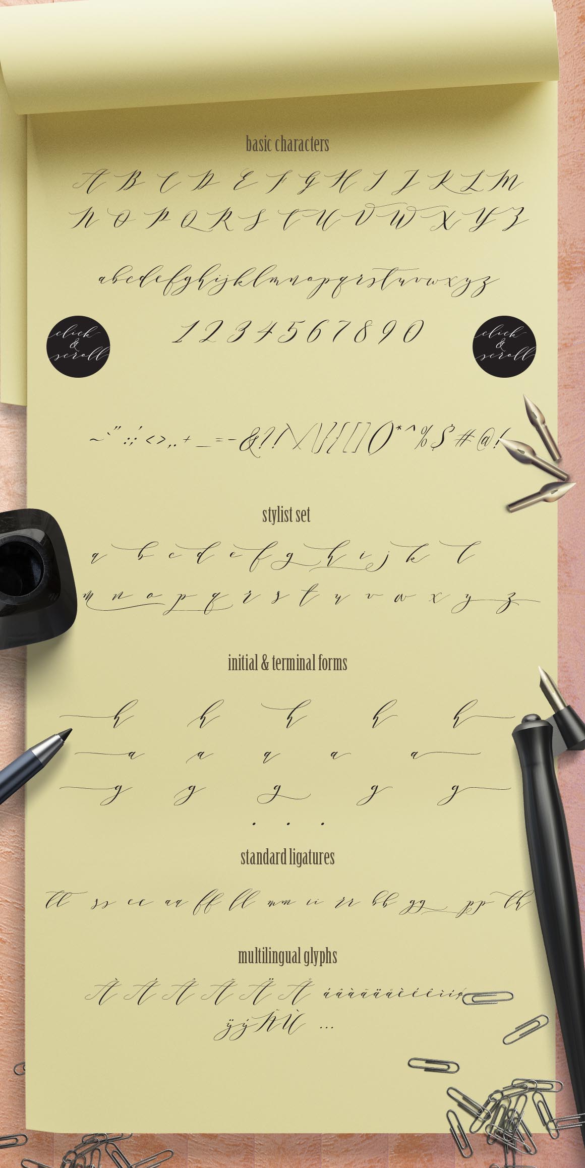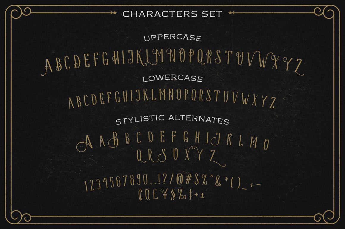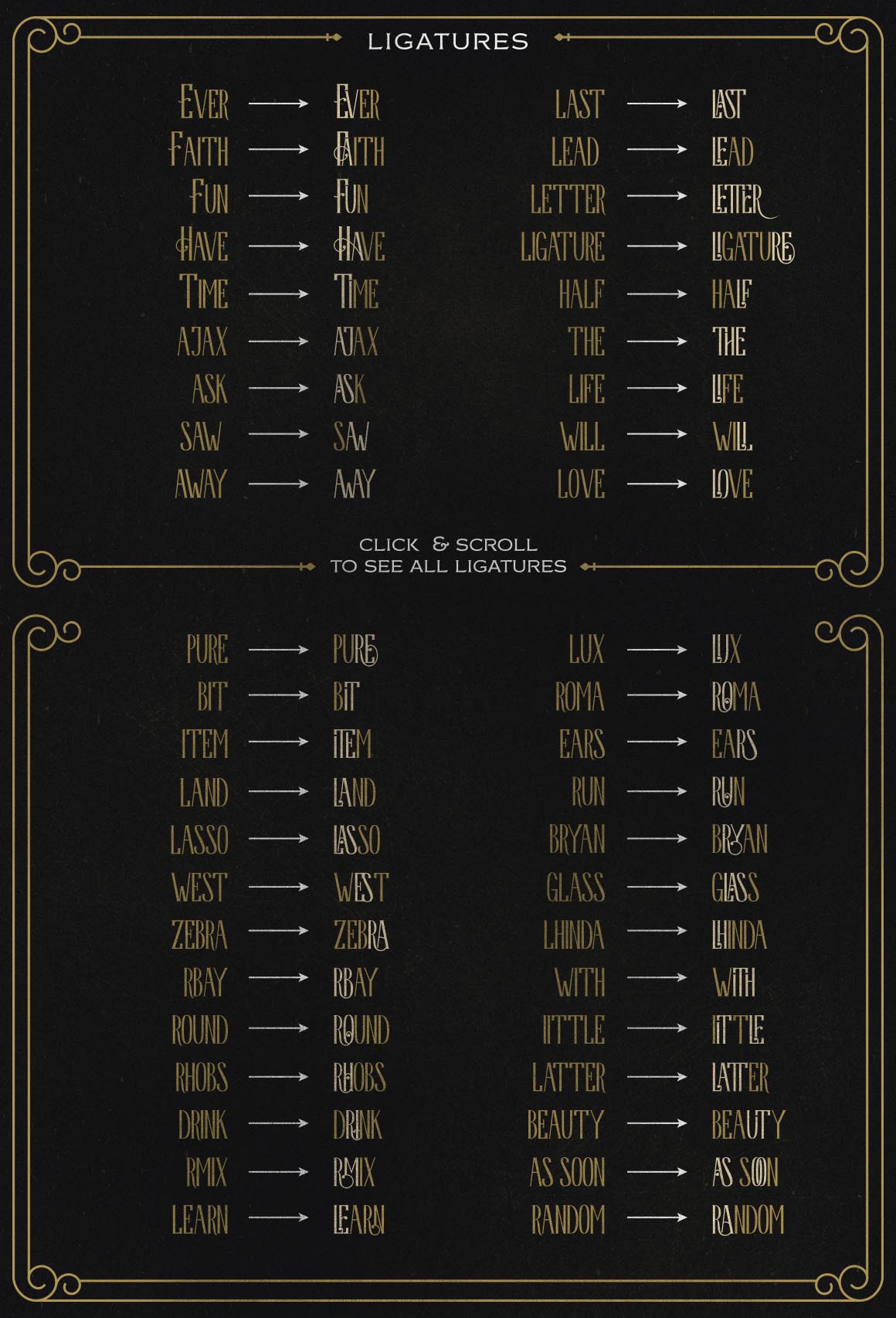 Inspired by gaslight combine victorian style with classic style .OpenType features some characters that allows you to mix and match pairs of letters to fit in your designs. To access the alternat glyphs, you need a program that supports OpenType features such as Adobe Illustrator CS and Adobe Indesign.