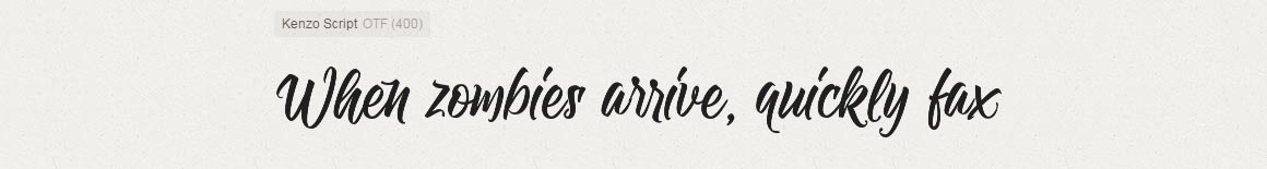 Kenzo script was created more free flowing as it is but still soft, style and more rocky you know! make your project design more humane not like machines. Kenzo script consists of 493 glyphs with 267 alternative. a full-featured open type and multilingual support. This font was created to help you designing brand of yours own or your client, and you also can use it for designing all of the graphic stuff such as badge, sign, packaging, headline, T-shirt/apparel, Poster, etc.