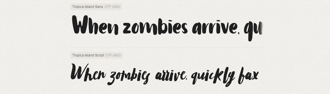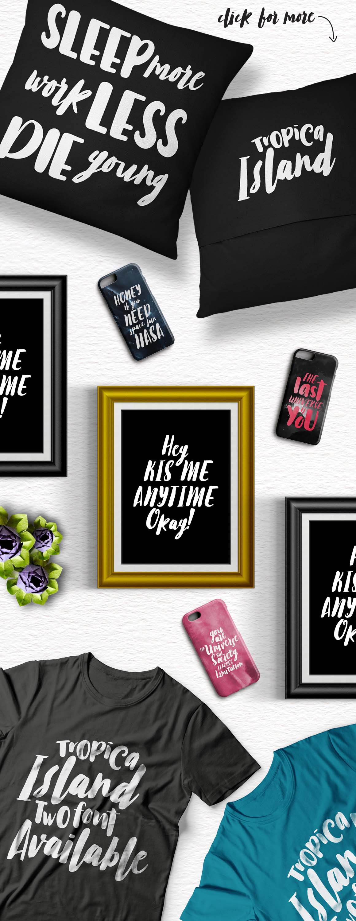 Introducing Tropica Island, a hand made Paint brushes. something fat and cute, very simple and very good for any project design. This font can help to to good display, can be used for various purposes. such as headlines, magazine, logos, wedding invitation, t-shirt, letterhead, signage, labels, news, posters, badges and all of your handcrafted projects presentations.