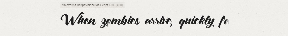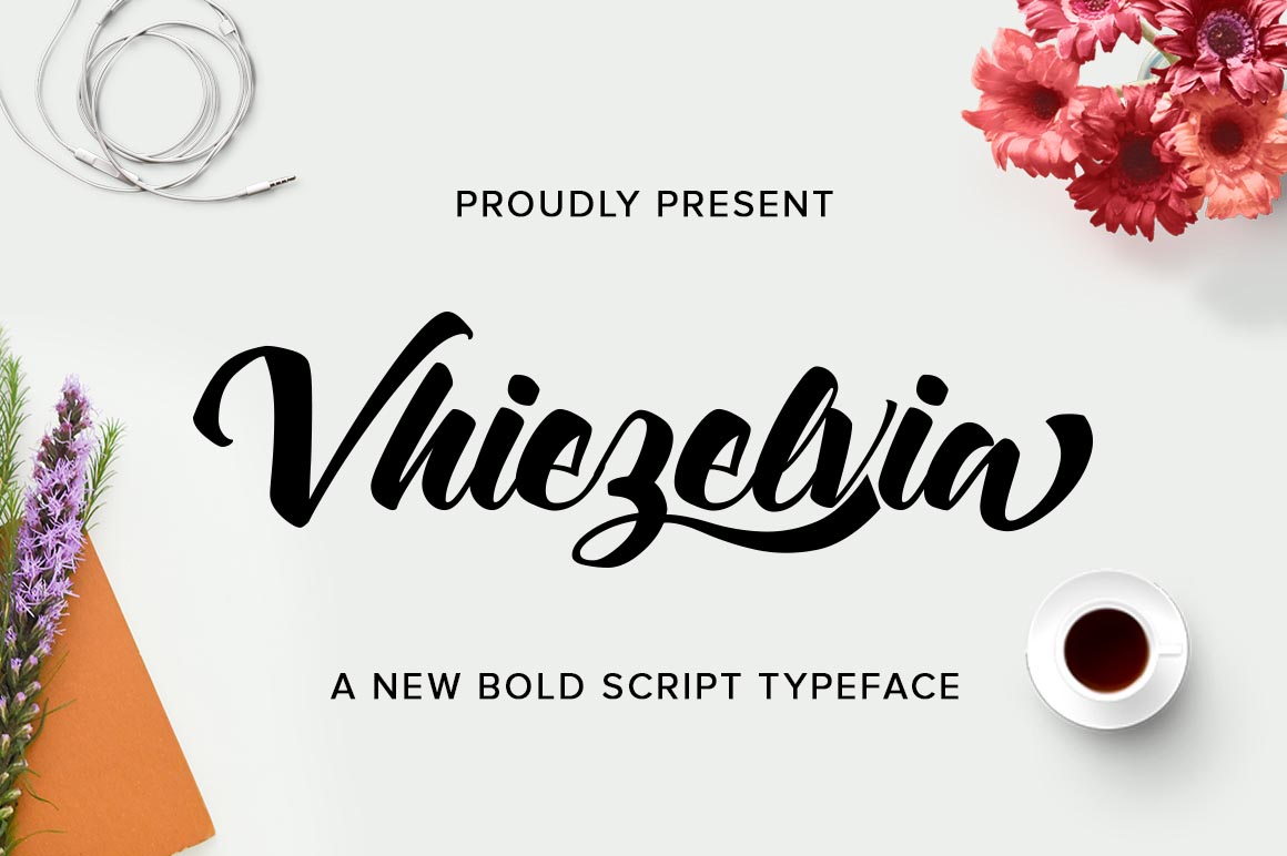 Vhiezelvia Script is a new modern bold script font, create using brush pen to make this typeface fully handrawn. Vhiezelvia Script containing all basic character, uppercase, lowercase, numeral and basic punctuation. Also containing 50 alternate characters to create some beautiful typography. To enable the OpenType Stylistic alternates, you need a program that supports OpenType features such as Adobe Illustrator CS, Adobe Indesign & CorelDraw X6-X7.