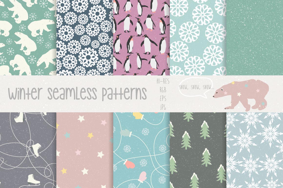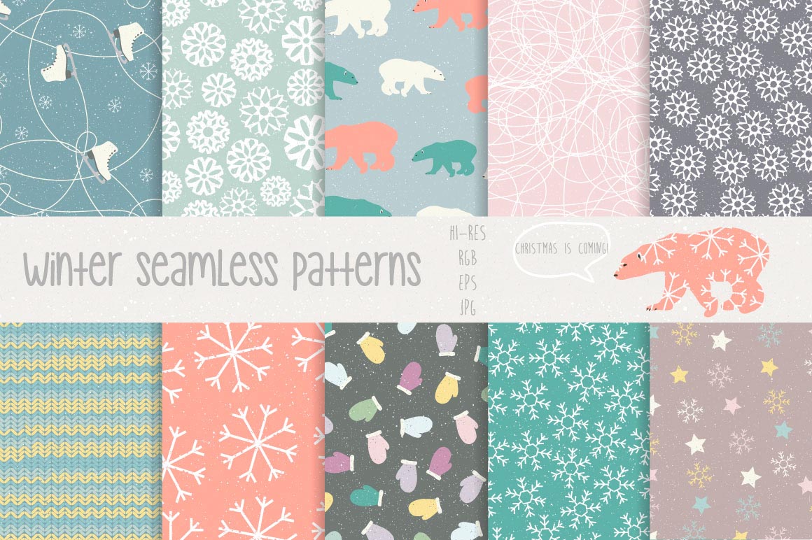 Christmas and winter is coming! And I made a few winter patterns. The result was a collection of 30 seamless patterns. You can use them for Christmas cards, posters, magazines, packaging and other. I also put in 2 textures pack snow, which was used in the pattern. I hope they will be useful in your design. This vector patterns, so you can customize the size and color as you like. And you can save in the format you need.