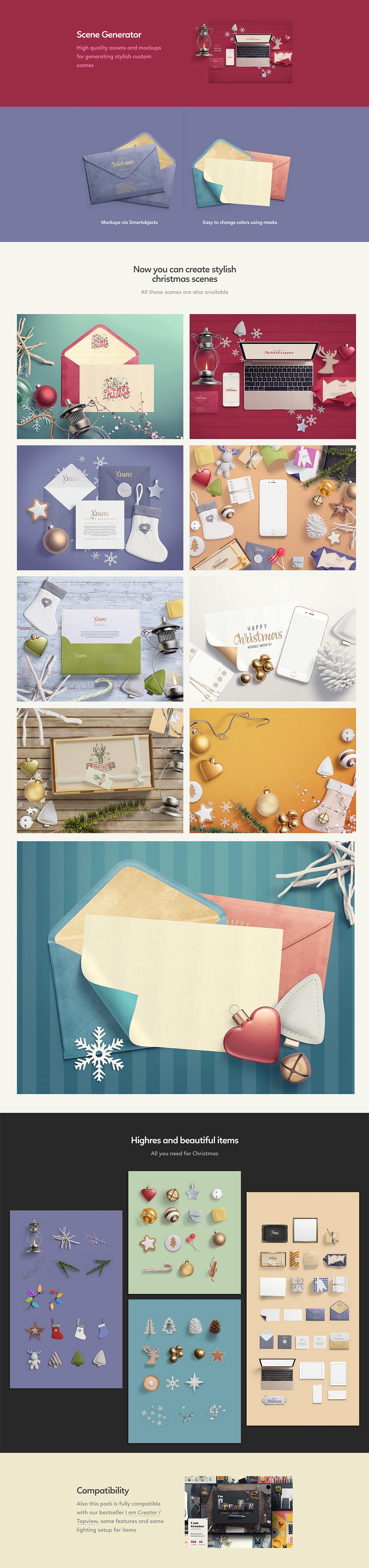 Hey guys, very soon you will have a lot of “Christmas” tasks from your clients. Grab this high quality assets and make your clients happy 🙂 Create scenes up to 5200x3600px, Color Masks for every material, Realistic mockups, Highres items, Beautiful premade scenes.