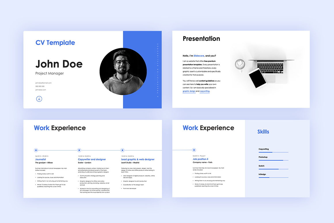 Free modern CV or resume presentation – Powerpoint template from Slidecore Templates. Download & enjoy đ