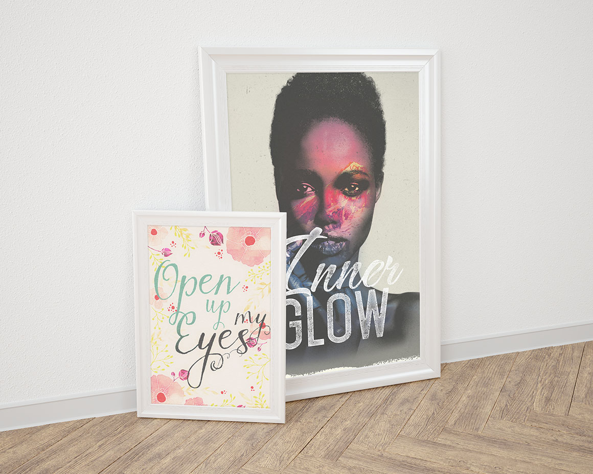Cool presentation mock-up template from GraphicTwister. You can use this template to showcase your design or artwork in 2 white frames with photorealistic effect.