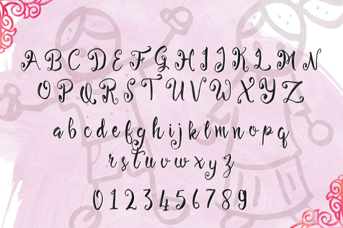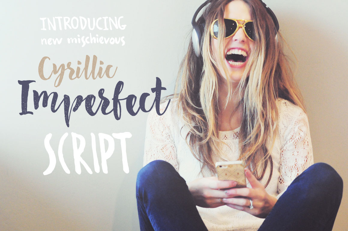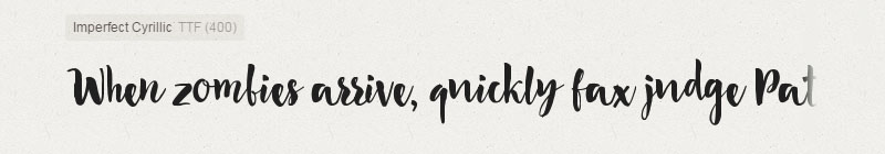 Imperfect is a bright mischievous lovely modern calligraphy typeface. Imperfect is good for both short texts and headlines. Features: Basic Latin A-Z and a-z,  Basic Cyrillic A-? and ?-?, Numbers, Limited Symbols.