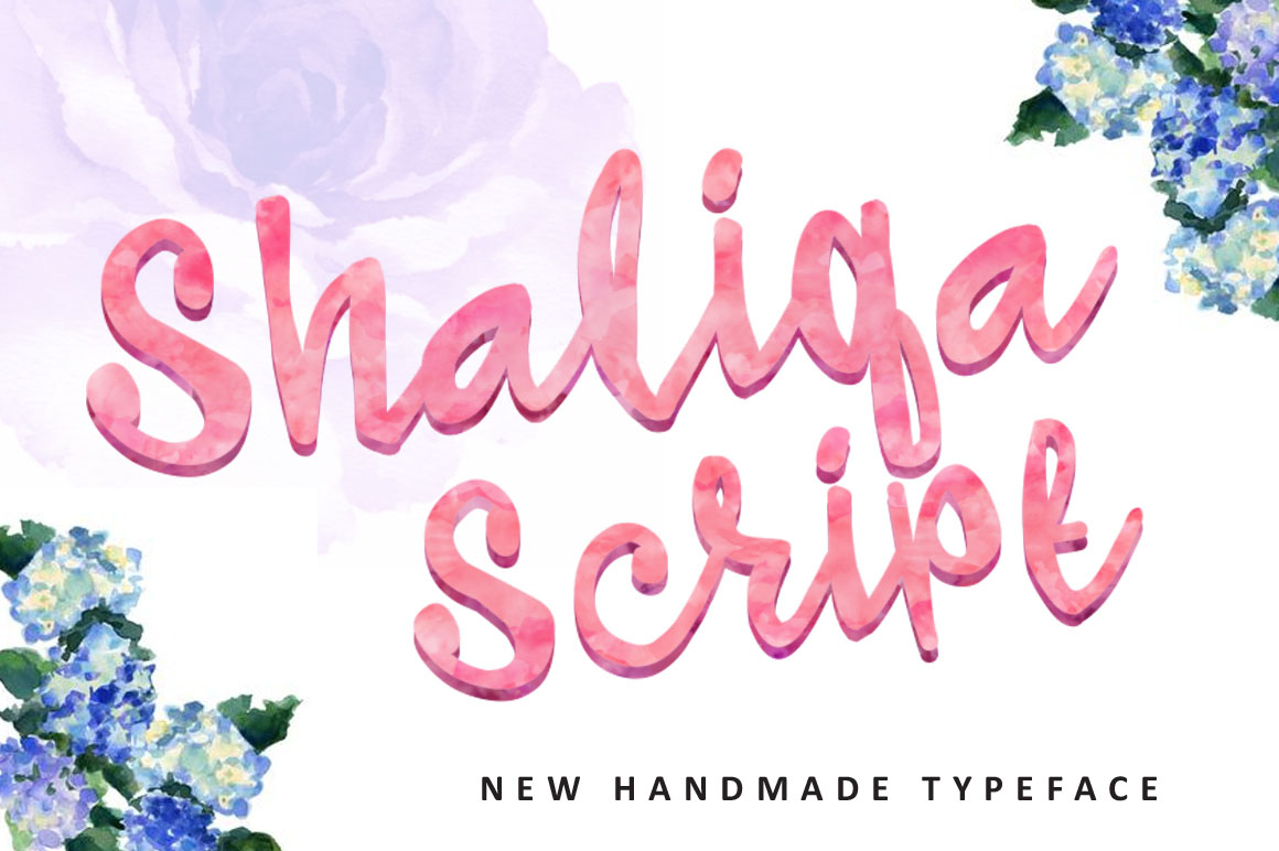 Shaliqa Script is a beautiful handmade brush script give the natural looks.100 glyphs. Great for Apparel Brand, any greeting cards, book cover, Painting design style, or any design that needs natural and personal touch.