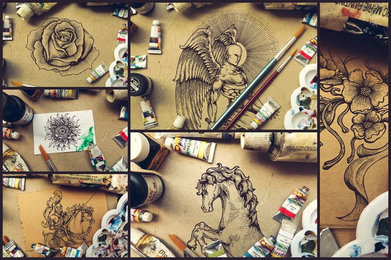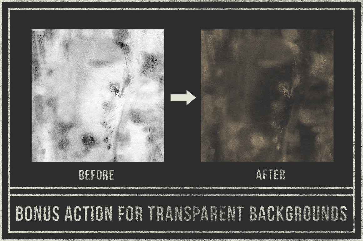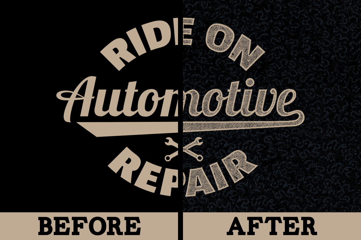 Adding authentic vintage textures to your work has never been easier thanks to the smart PSD files inside the Vintage Auto-Press. Just place your design or illustration work inside a smart object layer, and then you can toggle on and off vintage textures dating back to the 1800’s with a single click.