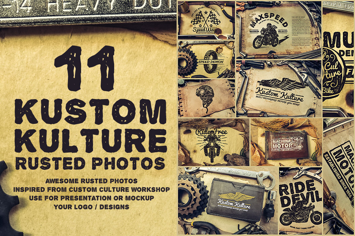 This product contains 11 authentic kustom kulture rusted photos. Awesome photos to use on mockups, header, hero images…. If you have project related with custom motorcycle, automotive or industrial concept then this is the right stuff for you! Make your presentation or design look badass with these authentic photos!