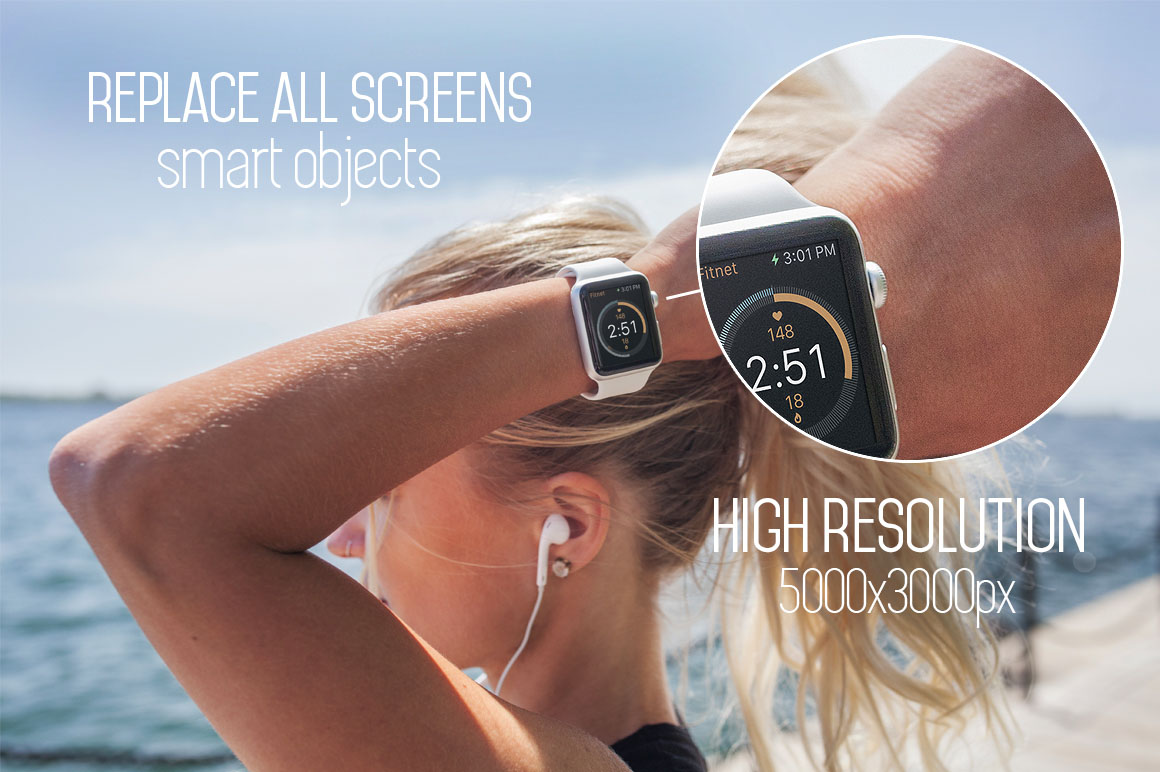 With Apple newly announcing WatchOS 2 get these 12 Apple Watch Mockups to display fitness Apps as well as use for stock photos on your website! Easy to edit templates using real photos and smart objects. You can even change the band color to one of the 5 different colors. Very high resolution 5000x3333px.