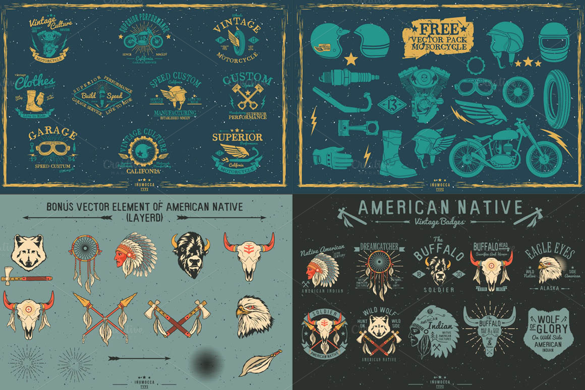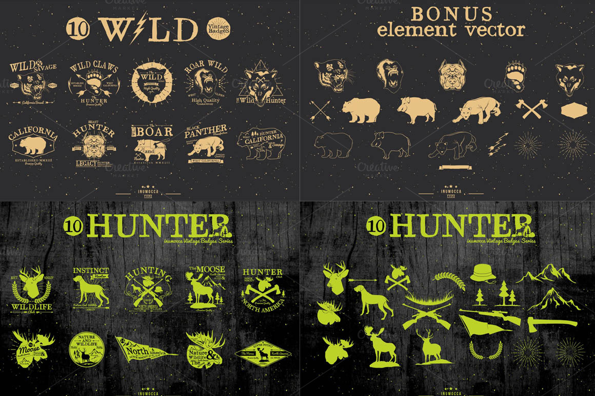 D1. 50+ Vintage Badges Bundle by Inumocca