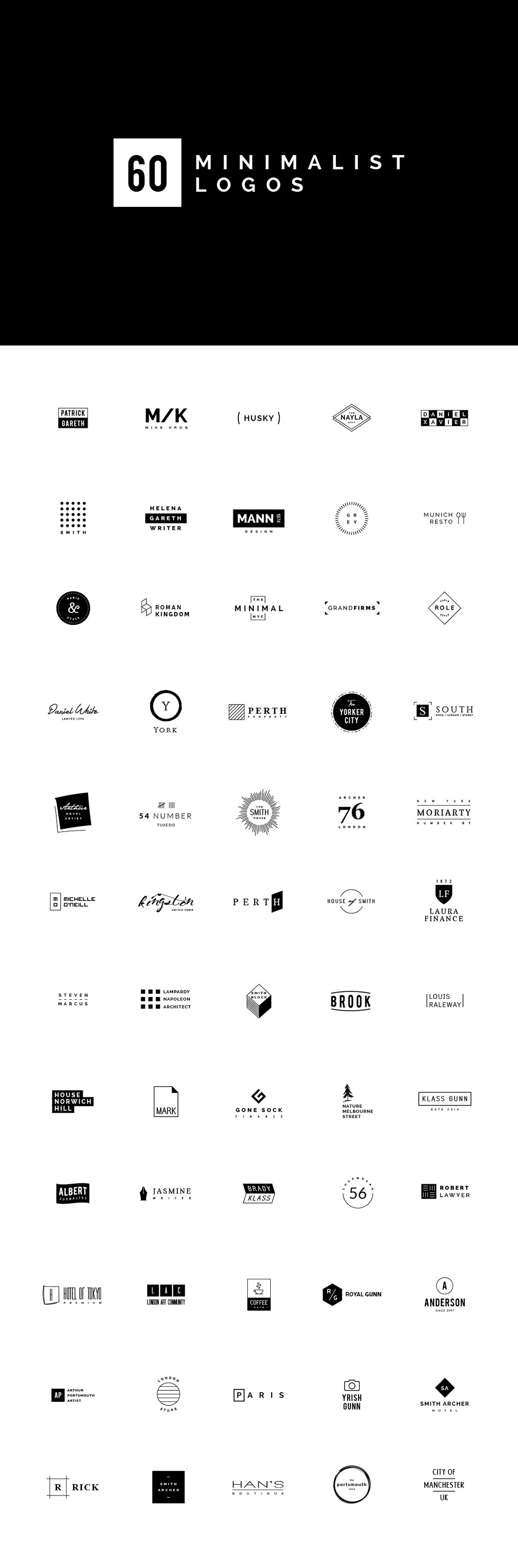 60 simple and clean minimalistic style logo templates.