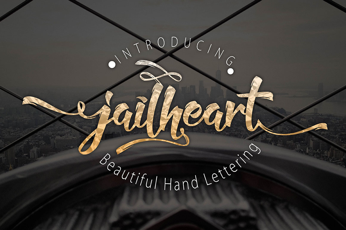 Jailheart is a beautiful hand lettering typeface that comes with a set of Beautiful extras. Suitable for a variety of media design , logo, fashion, poster and all design product…