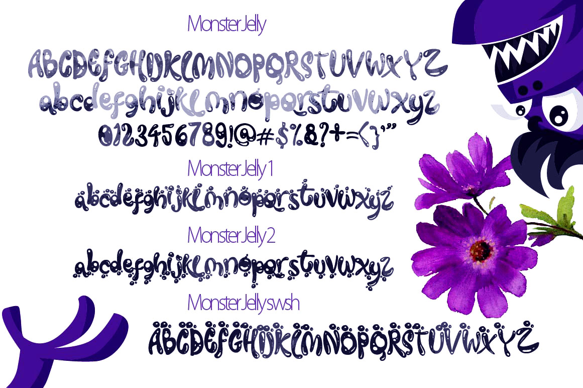 Monster Jelly is a creative and unique script typeface. Suitable for a variety of creative media design, logo, fashion, poster and all design product…