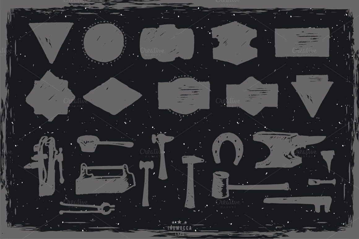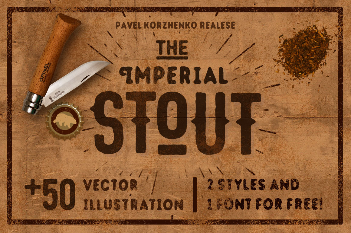 Firstly, it’s a my new vintage font – Stout. Perfect for logo’s, headers of your flyers, cards, posters, etc. Letters, numbers, punctuation and discretionary ligatures. Type has a two styles – normal and handy. Second, is a free bonus: 50 VECTOR OBJECTS!
