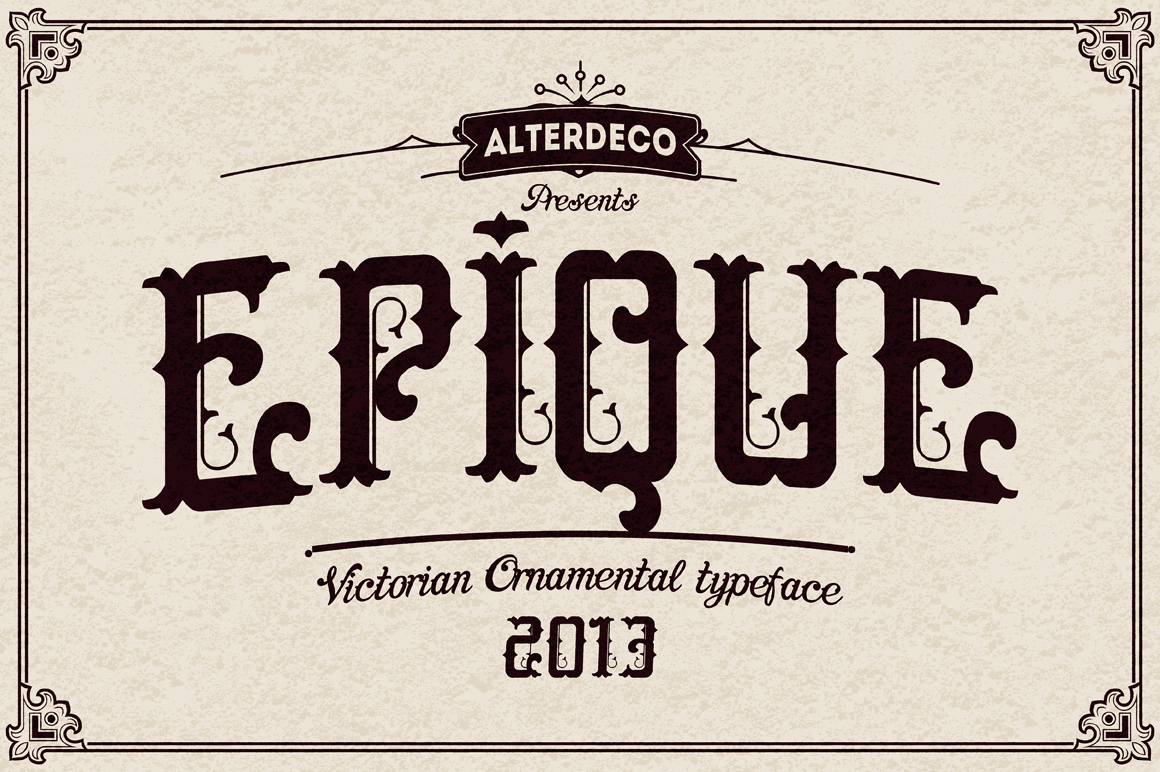Epique typeface, it’s a victorian and ornamental typeface. It’s inspired by old victorian and ornamental typography design, with a modern and clean shape and it’s perfect for creating a wedding invitations, headlines, or logotype, or even a t shirt/apparel design.