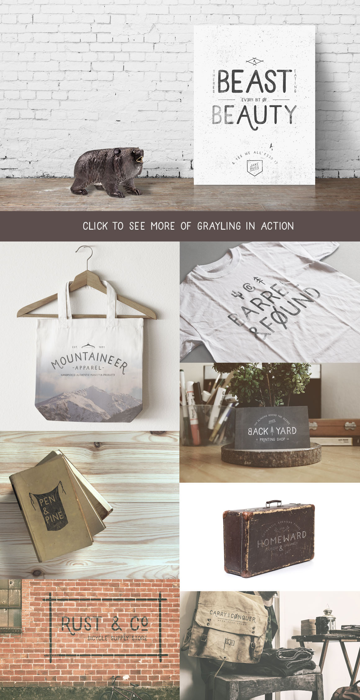 Grayling is a handsome new hand drawn font from Design Surplus. Grayling is ideal for branding projects that require a clean but hand drawn personal approach. Check out the 12 BONUS logos and 60 icons included with Grayling.