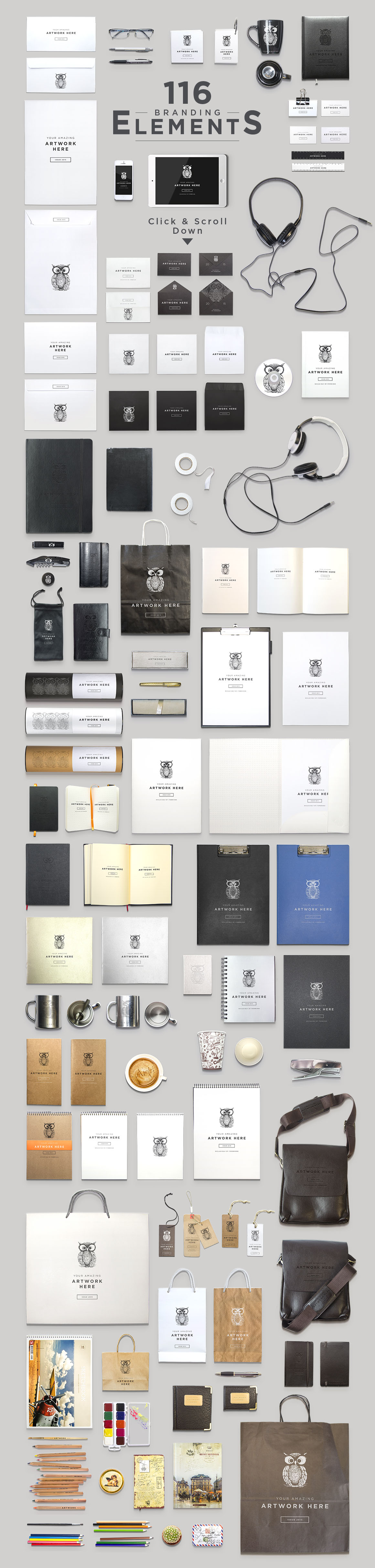 • 44 custom font families, 9 mock-up items, 20 add-on items, 5 logo & icon items and 14 beautiful graphics bundles!