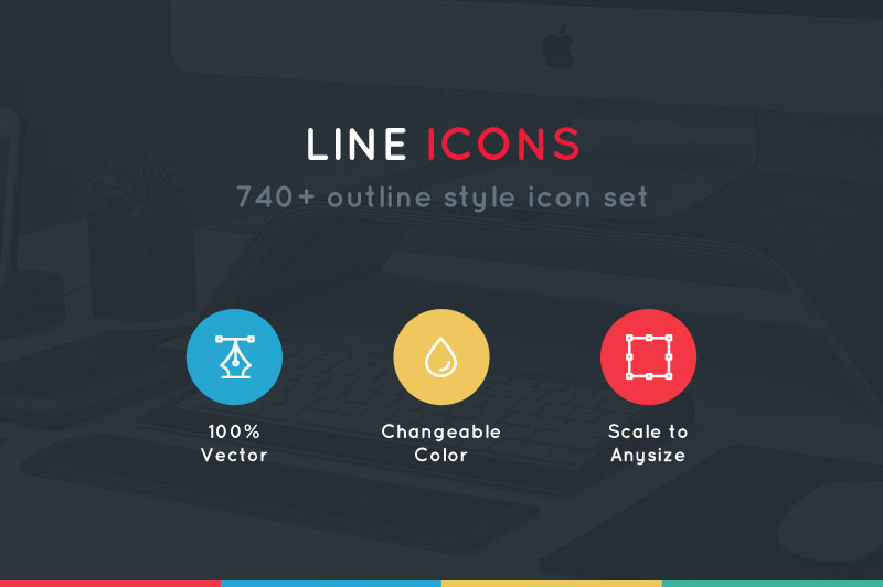 More than 740 line style icons in vector ai and eps formats.