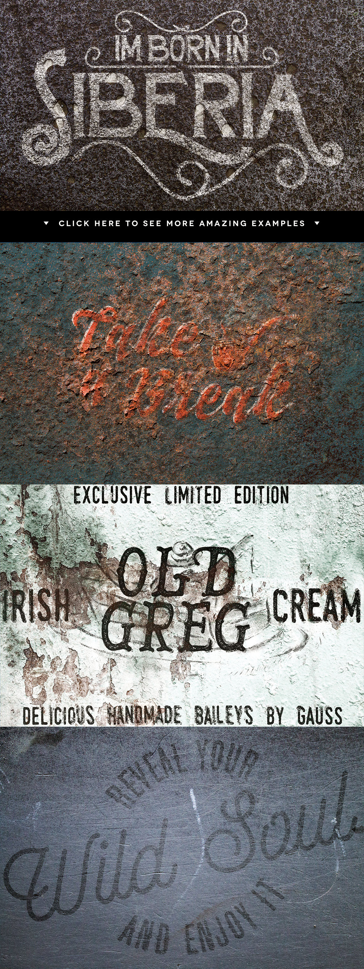 Add some grunge metalic style to your lettering/photo/vector in few simple clicks!