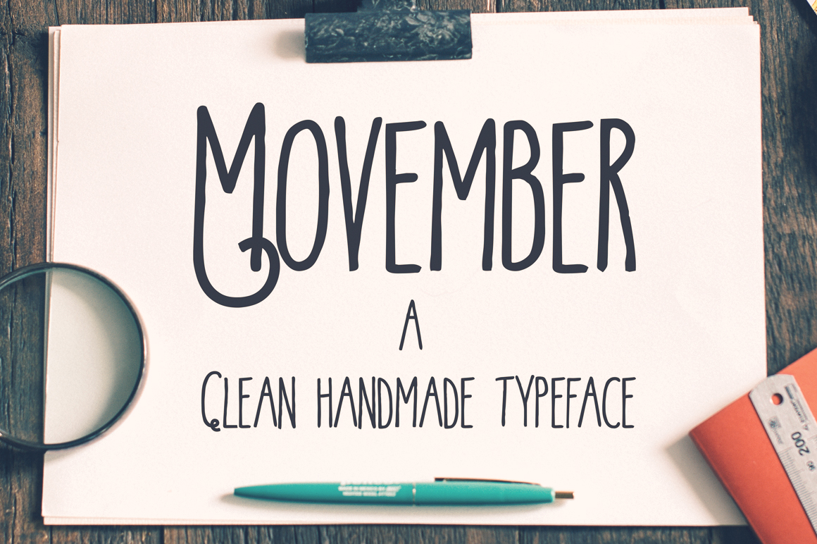 Movember typeface “clean” is a fancy handdrawn style font, carefully made by hand. Perfect for your handdrawn style designs or logos.