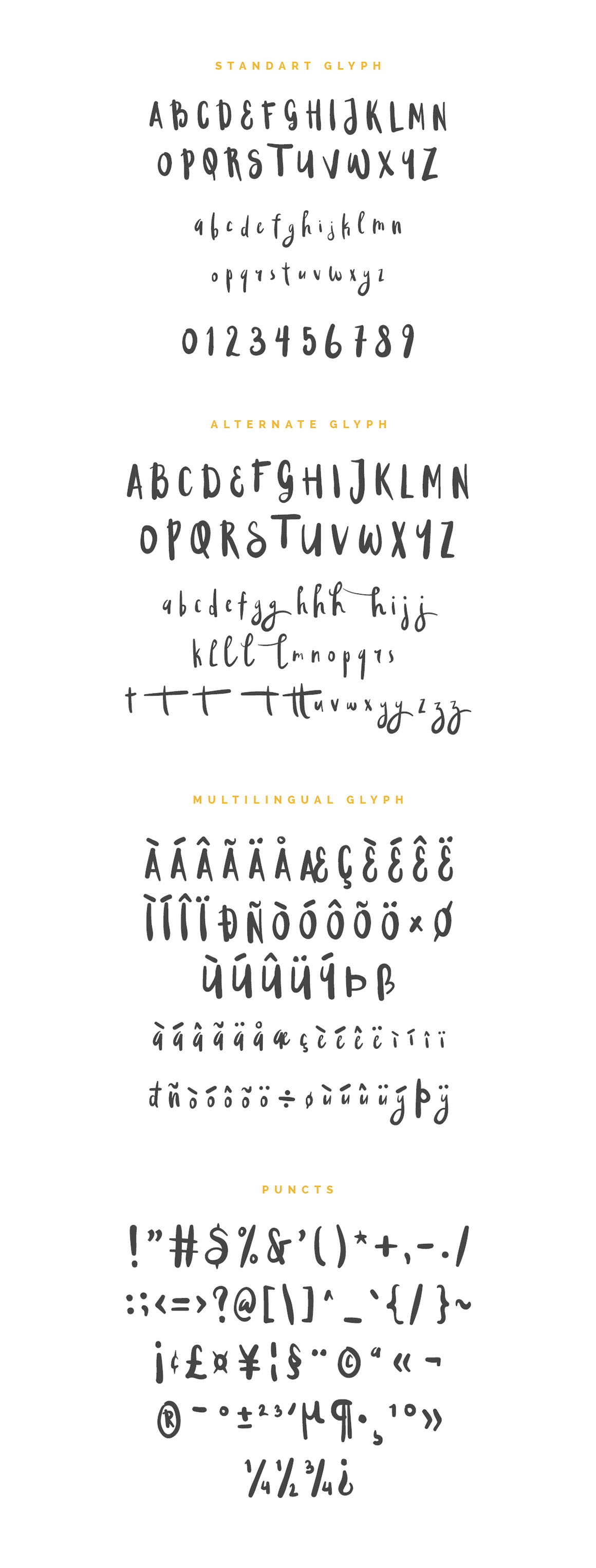 Glad to show you my new typeface with perfect hand drawn effect. Very detailed brush font will be really good for any type of your works: logos, business cards, magazines, package design, t-shirts etc.