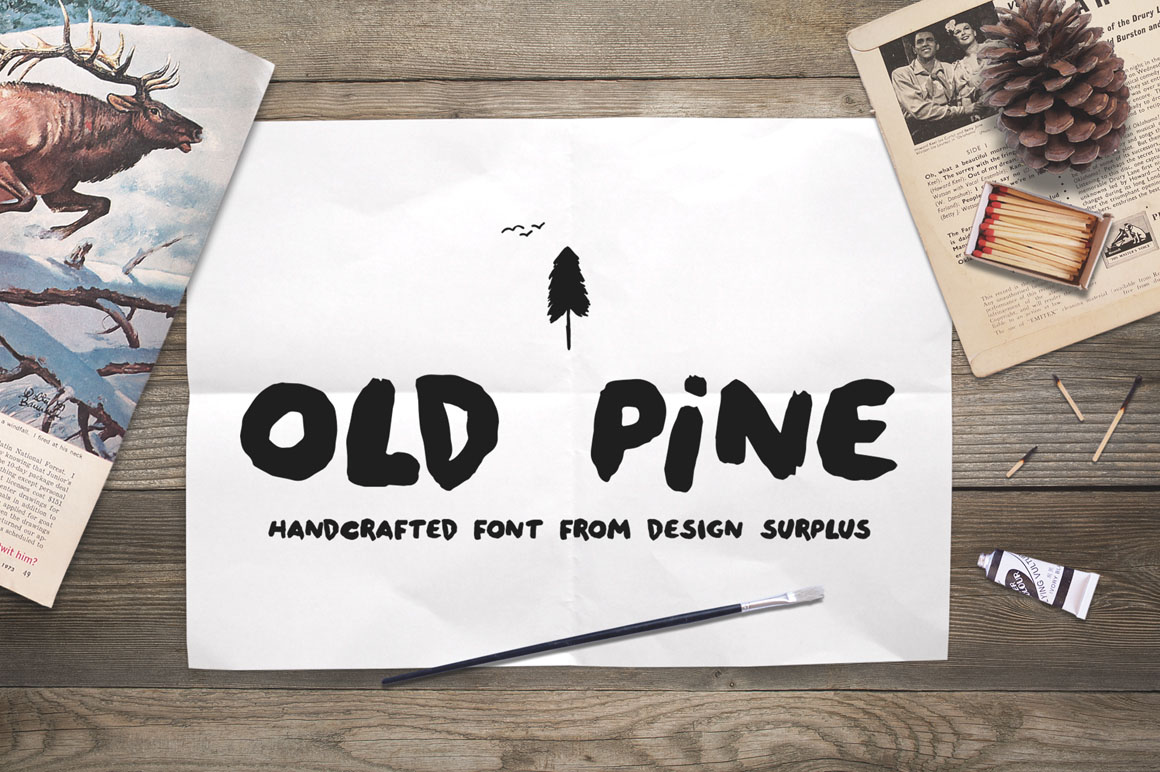 Stay true to the great outdoors with Old Pine, the new handcrafted brush font from Design Surplus. Old Pine includes a collection of upper and lower case letters that work together seamlessly when mixed. Old Pine Extras is a bonus hand painted dingbat font to match the Old Pine lettering.