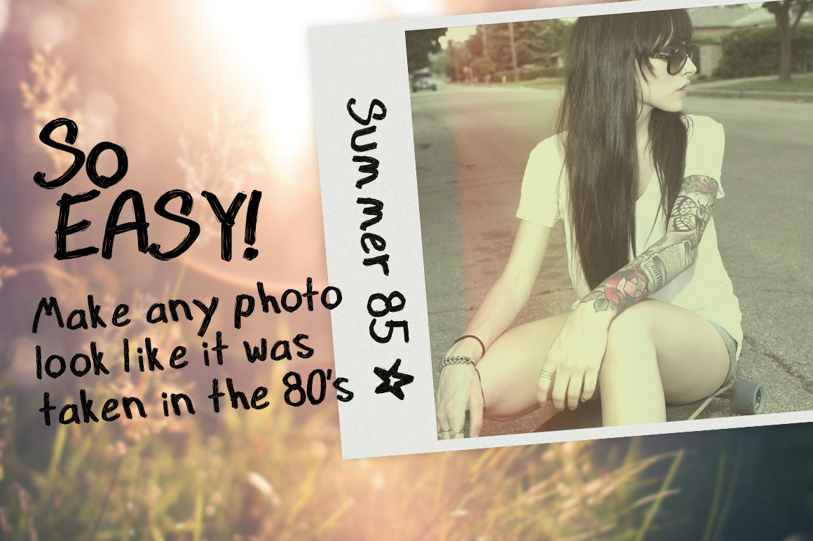 Have you ever wanted to add a cool vintage Polaroid effect to your photos? This kit is a ton of fun to add some vintage flare to your photos! Even if you don’t need the templates but Love the filters you can use them on their own! Have some fun and bring it back to the 80’s!