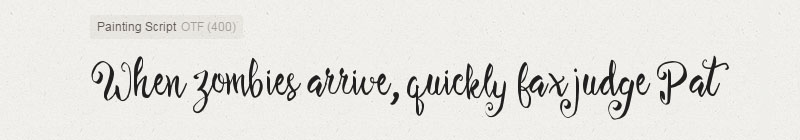 Painting Script is a beautiful handmade brush script give the natural looks.196 glyphs. You can access using OpenType savvy programs such as Adobe Illustrator and Adobe InDesign. Great for Apparel Brand, any greeting cards, book cover, Painting design style, or any design that needs natural and personal touch. Mix and match the alternate characters to add an attractive message to your design.