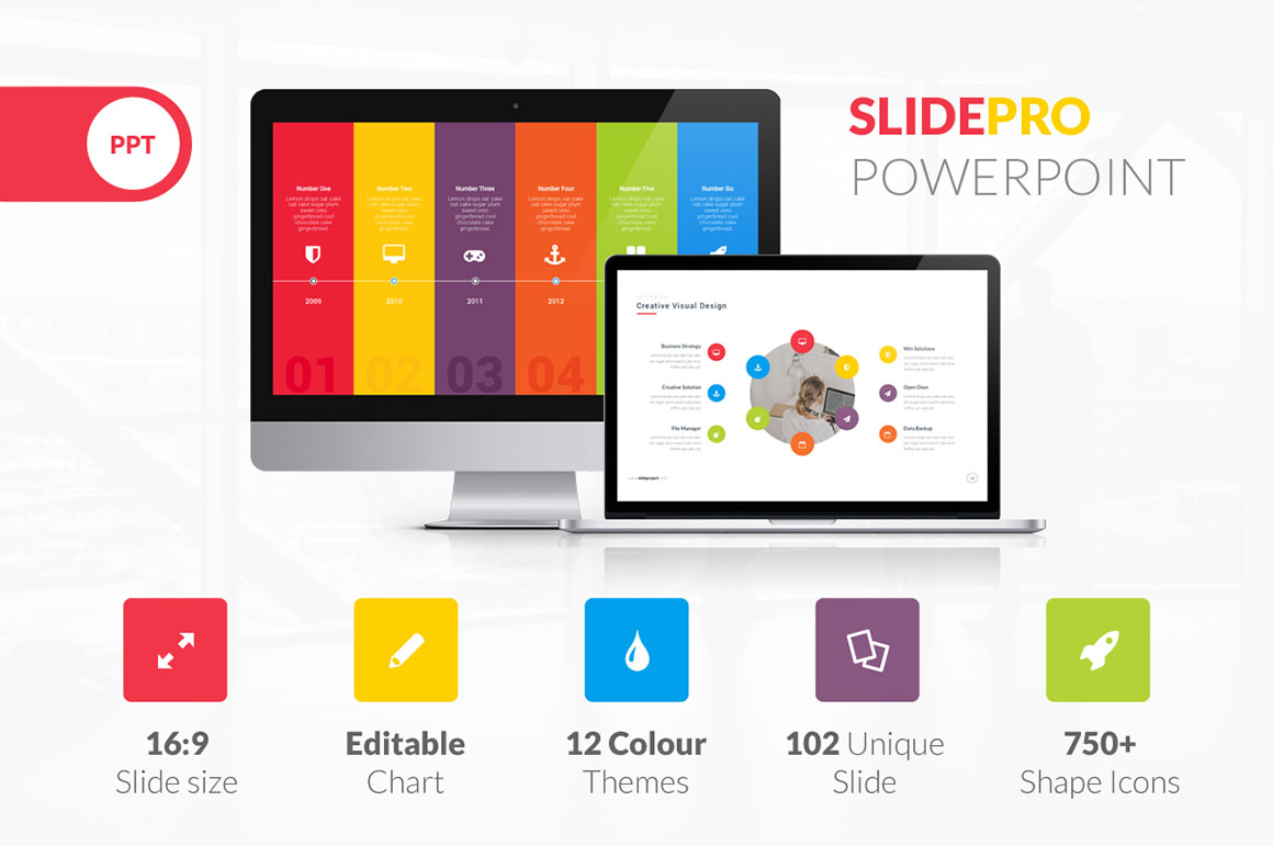 If you need unique, professional, clean, creative, simple PowerPoint presentation template this one would be great for you. All element are easy to edit and you can easily change the color to match it with your personal or company brand. SlidePro has 100 unique slides (team, portfolio, chart, infographics, map, table, timeline, etc).