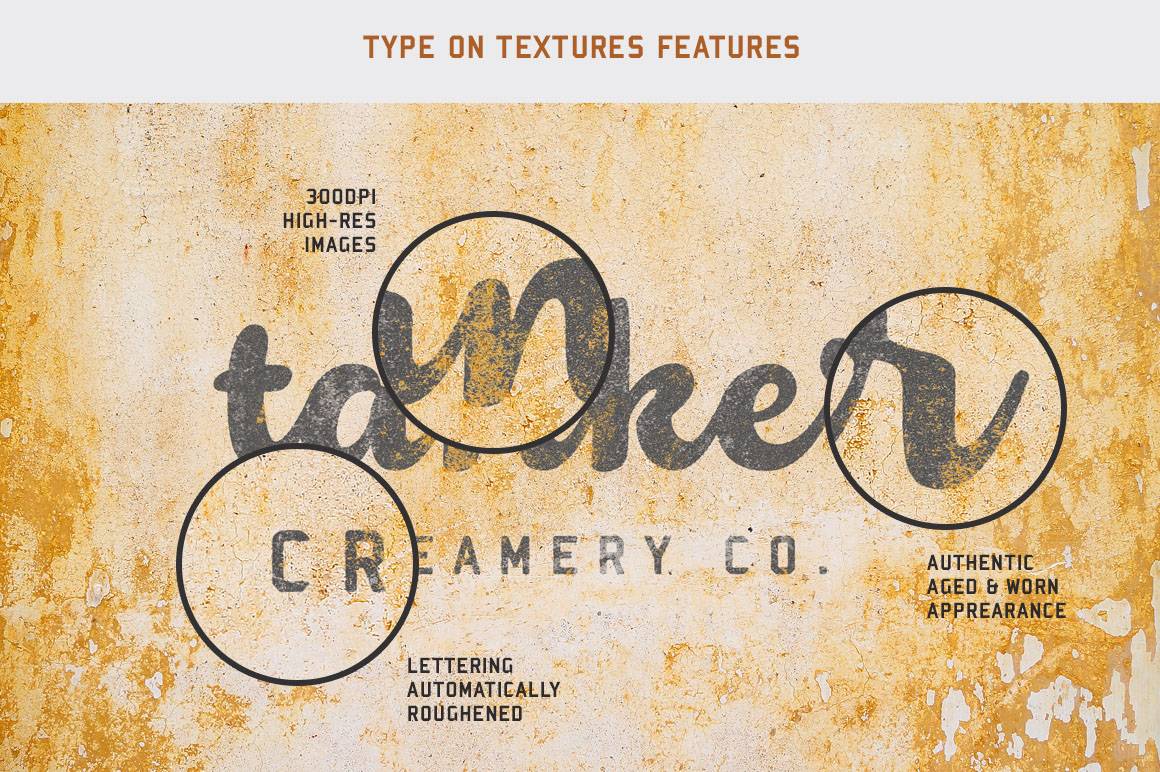 E9. Type On Textures (+BONUS logos) by DesignSurplus