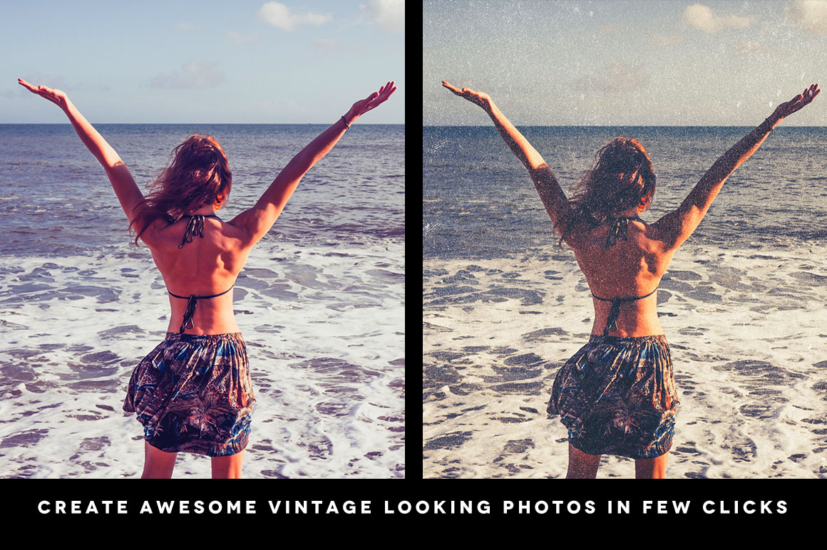 “Vintage Photo Press” is a set of authentic effects in one smart psd. file. In just few simple clicks you can add cool color effects and vintage press textures to your photos. Add vintage atmosphere to your photos! 😉