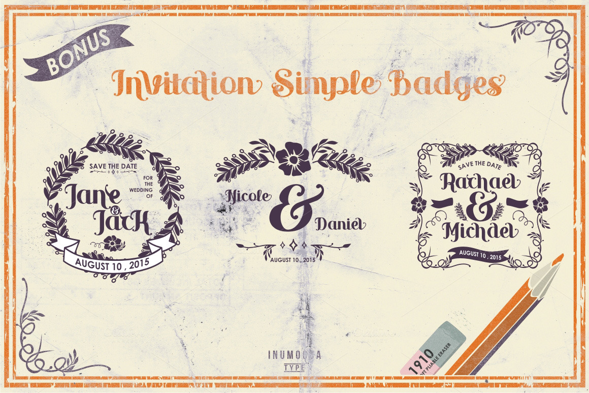 Yellow Orange lettering is a script lettering with mix of vintage & modern style and with +240 glyphs. BONUS : INVITATION SIMPLE BADGES (ai , eps file).