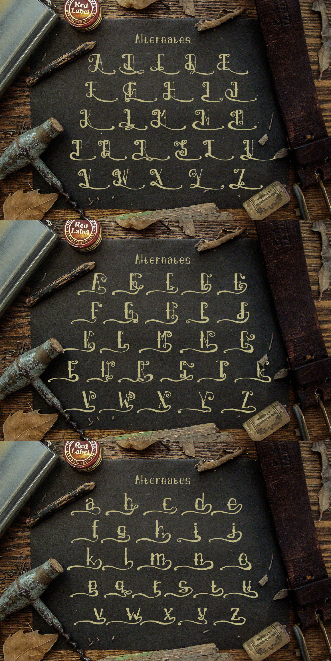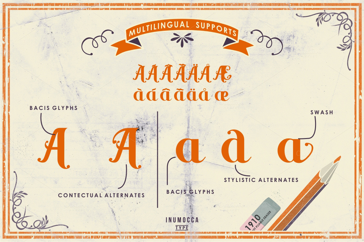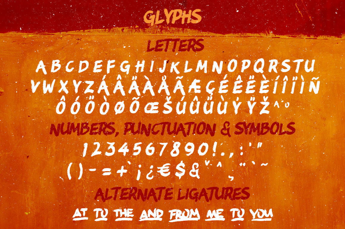 Inspired from rusted and distressed handdrawn lettering used on retro motorcycles. It comes with full alphabet alternates for Uppercase (Front & end) & Lowercase (end) its give you an exciting experience to use it in titling and or writing. To enable the Open Type features, you need a program that supports OpenType features such as Adobe Illustrator CS.