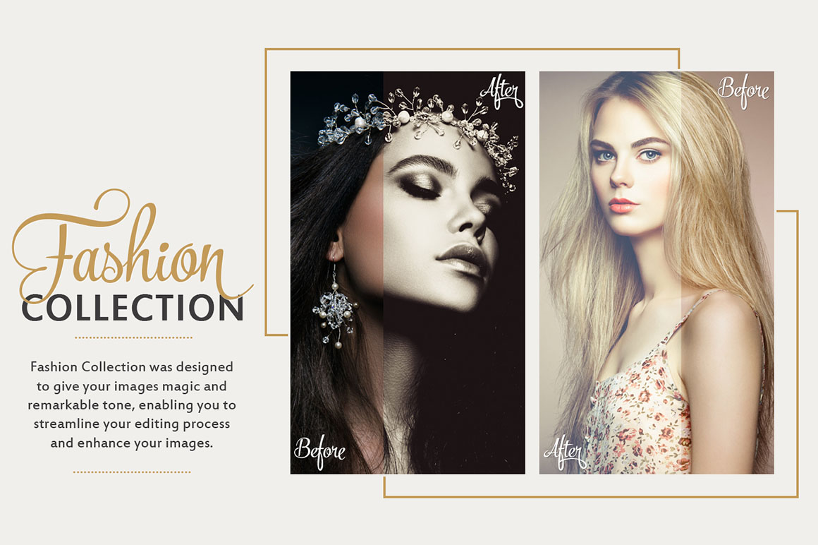 Fashion Photoshop Actions Premium Collection is a perfect for fashion photographers, graphic designers and fashion bloggers. These actions are professionally designed to give your images a magic and remarkable tone, enabling you to streamline your editing process and enhance your images.
