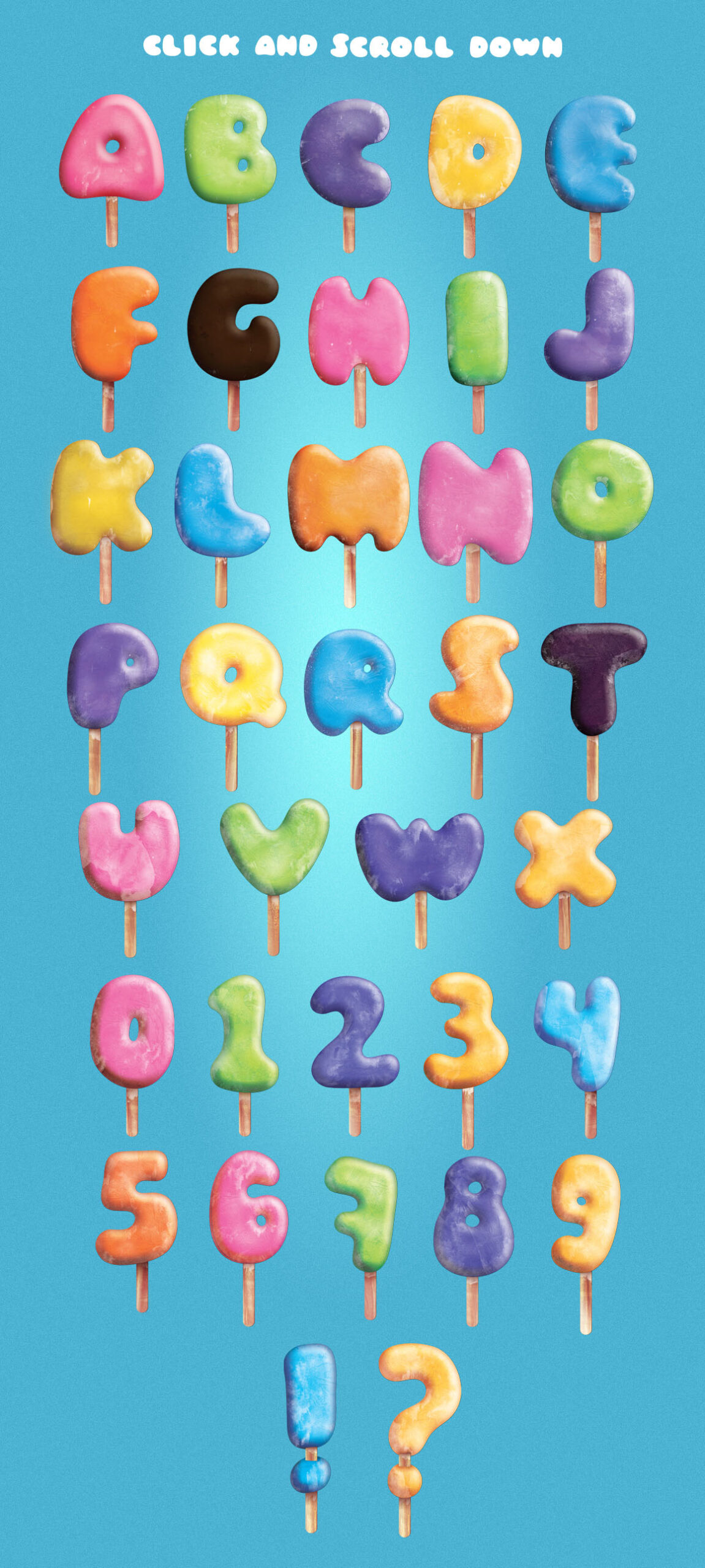 This is a very frozen glaze ice cream alphabet. Very detailed texture for more realistic. Every letter, numbers and symbols created by myself, without any fonts.