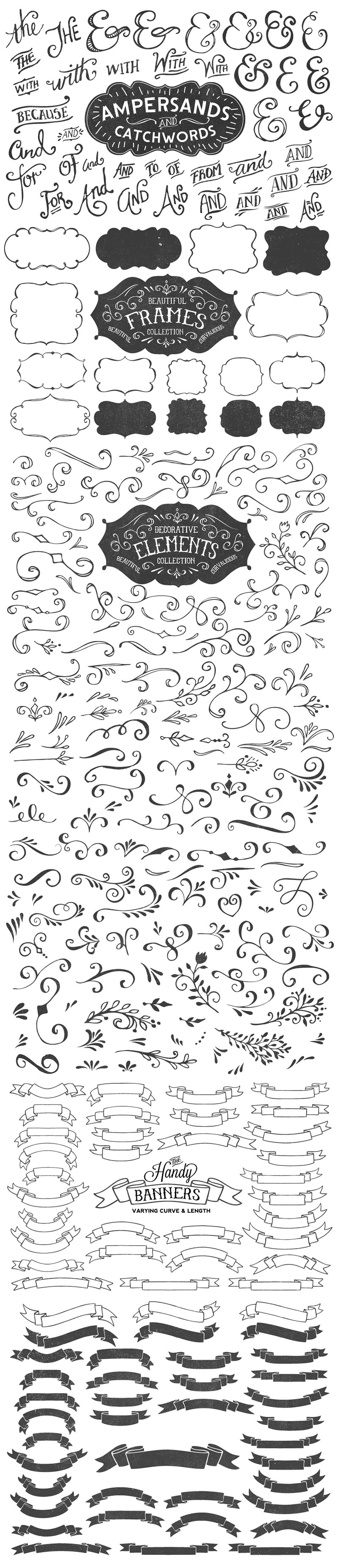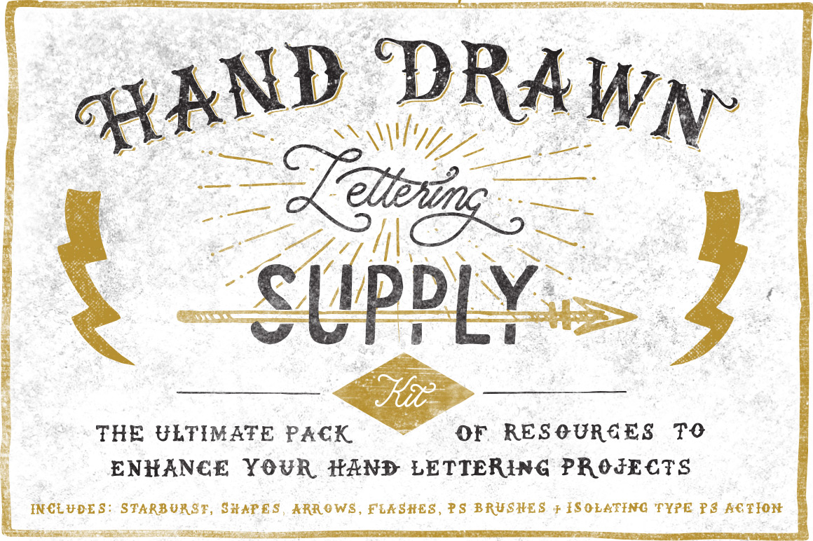 The Hand Drawn Lettering Supply Kit gives you everything you need to enhance the look of your hand lettering artworks. All the elements are hand drawn, to compliment your hand lettered artwork.